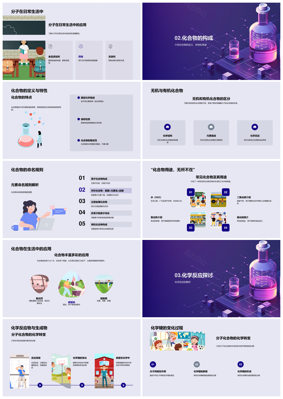 风云办公提供的分子化合物化学键反应无机有机命名PPT模板,下载格式为pptx,一共33页,作品中文字及图均可以修改和编辑,图片更改请在作品中右键图片并更换,文字修改请直接点击文字进行修改。