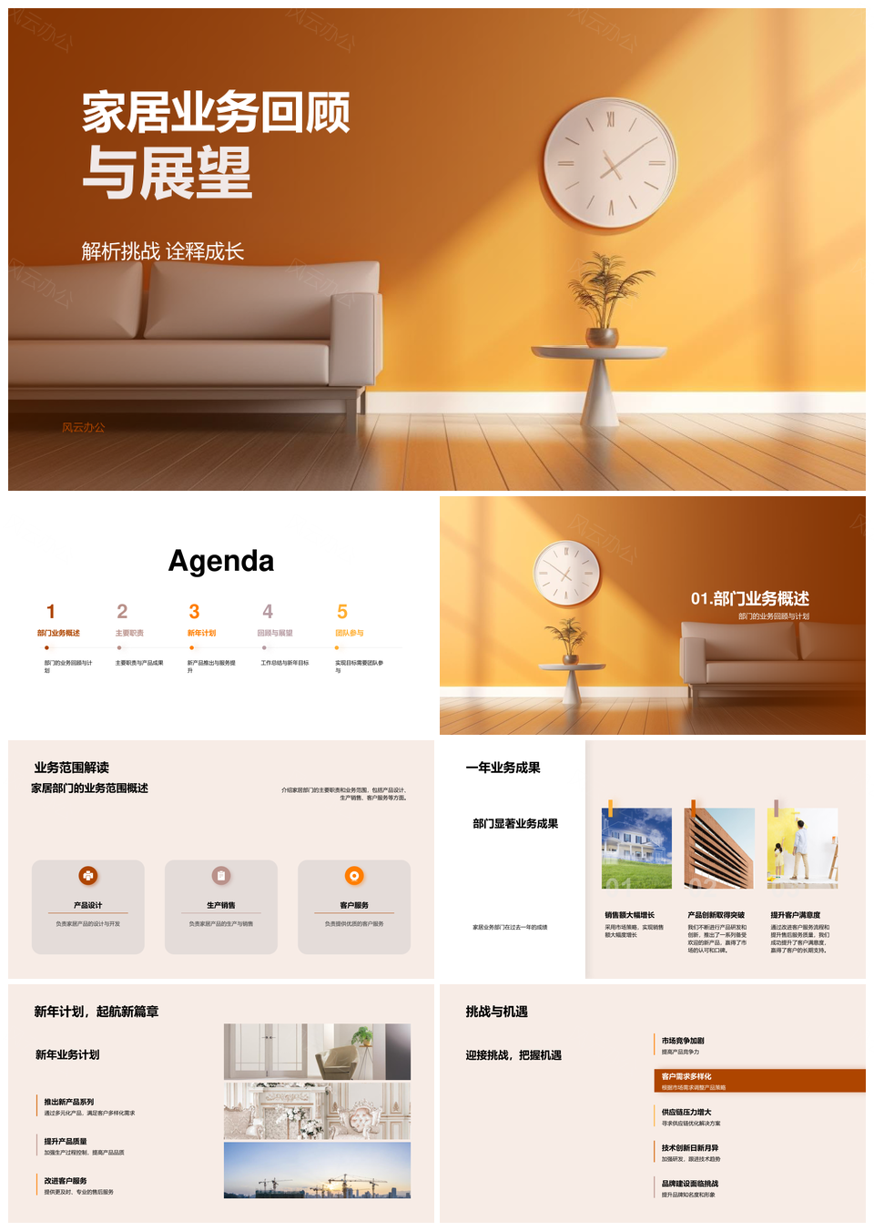 风云办公提供的家居业务发展回顾与新品产销计划PPT模板,下载格式为pptx,一共33页,作品中文字及图均可以修改和编辑,图片更改请在作品中右键图片并更换,文字修改请直接点击文字进行修改。
