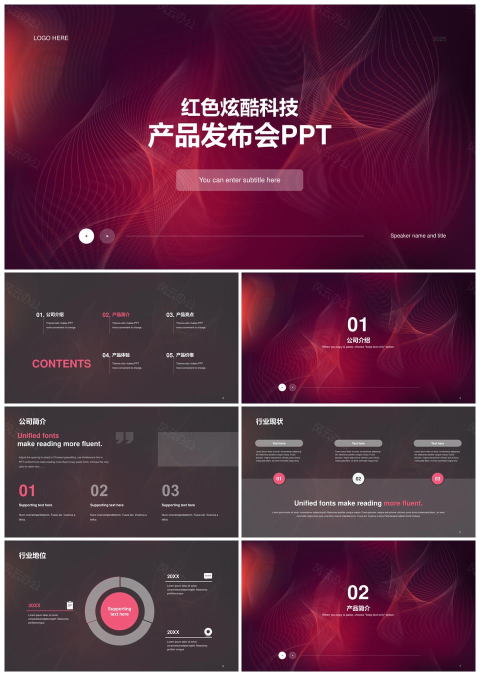 2025红色创意炫酷科技互联网发布会PPT模板推荐