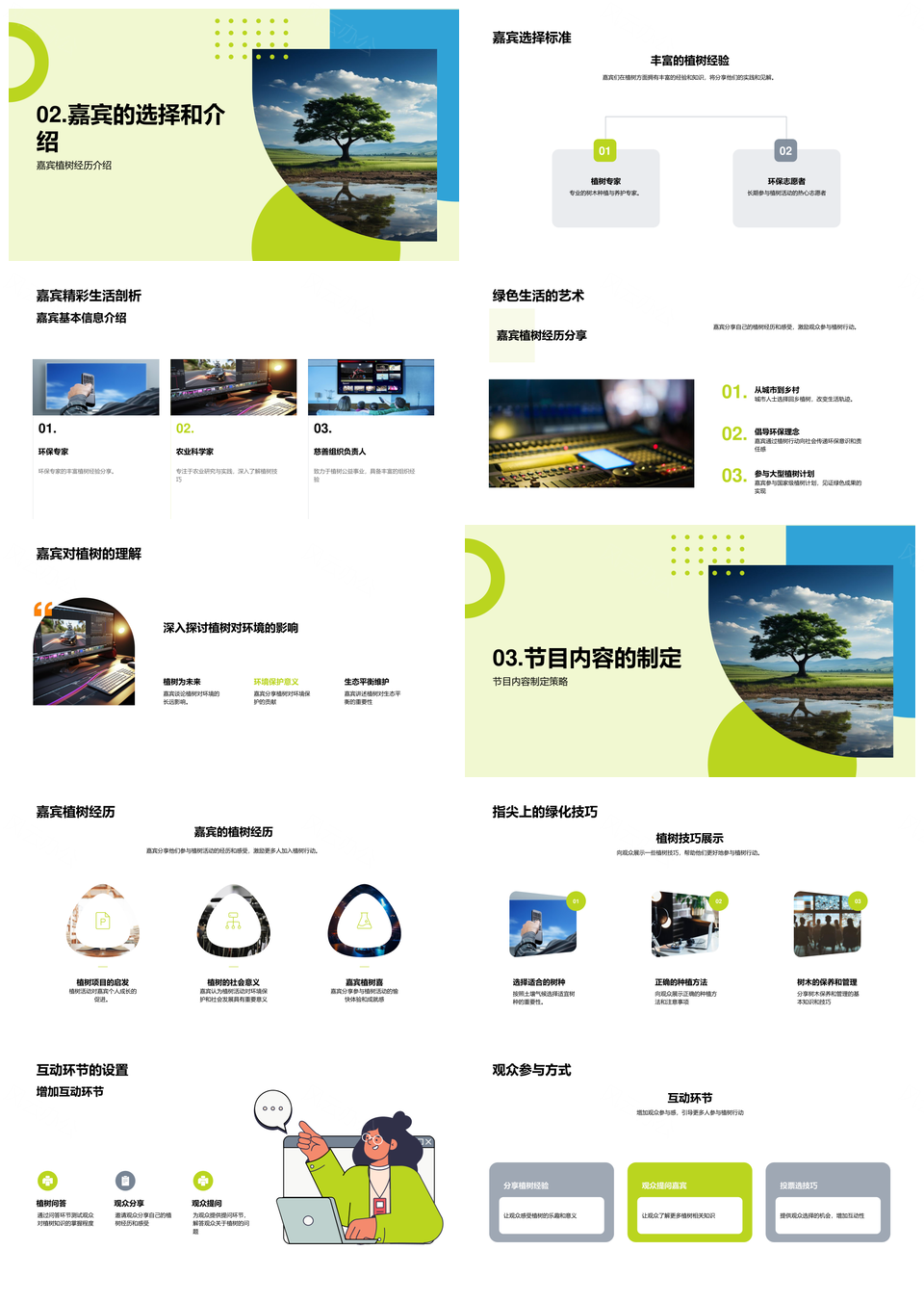 风云办公提供的电视节目植树节嘉宾共倡绿色生活PPT模板,下载格式为pptx,一共28页,作品中文字及图均可以修改和编辑,图片更改请在作品中右键图片并更换,文字修改请直接点击文字进行修改。