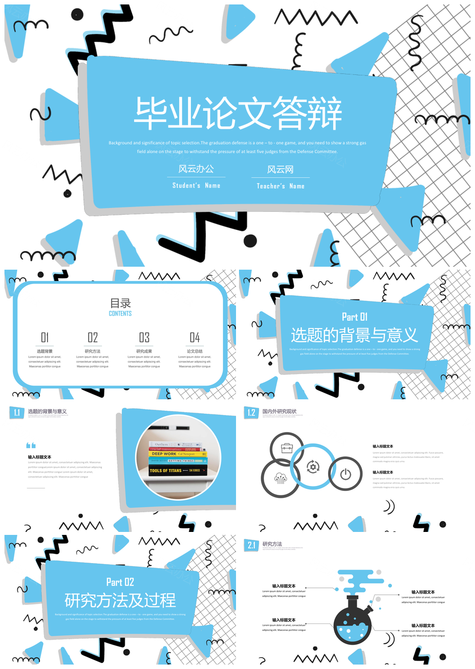 开题报告彩色孟菲斯风毕业答辩PPT模板