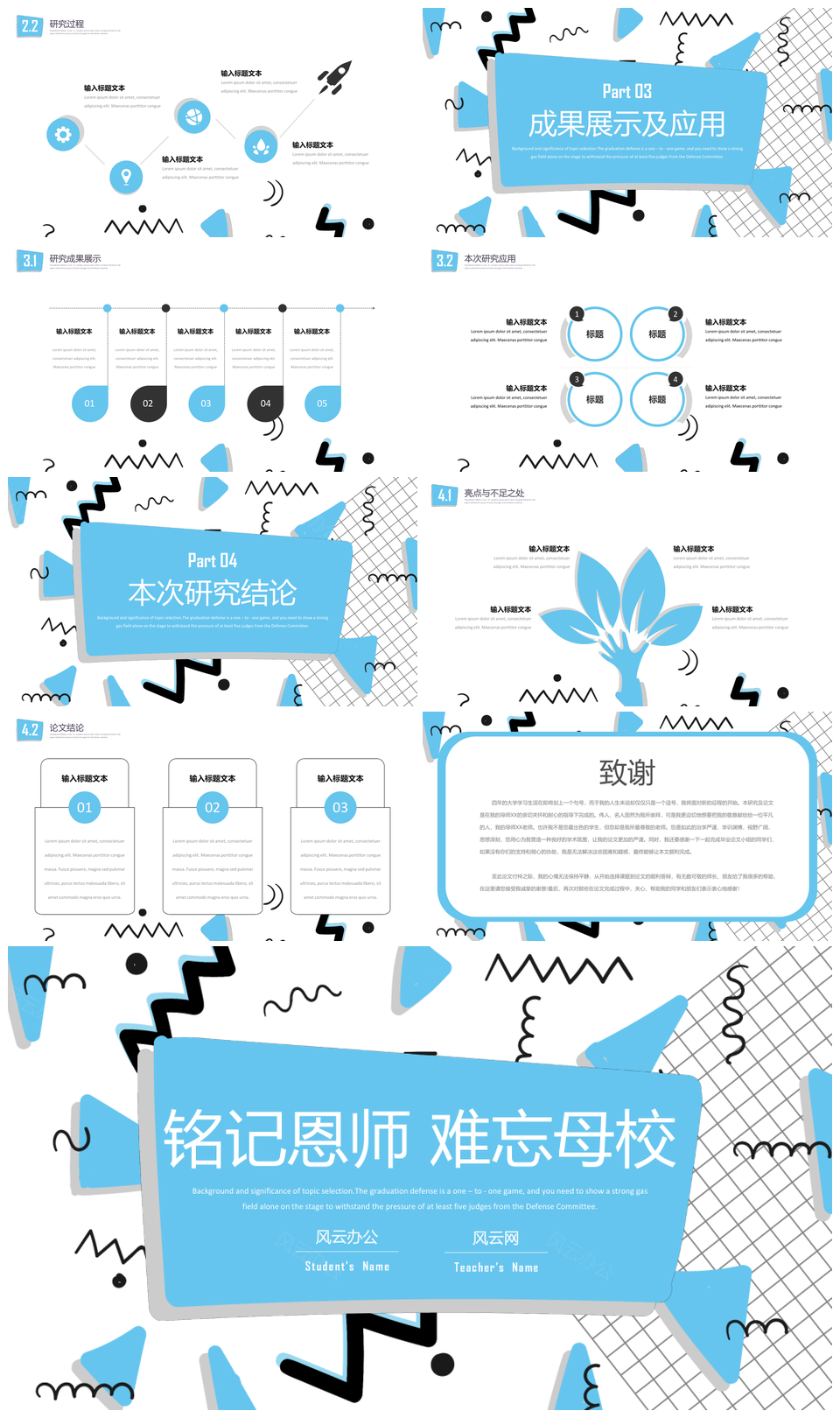 毕业设计彩色孟菲斯风毕业答辩PPT模板