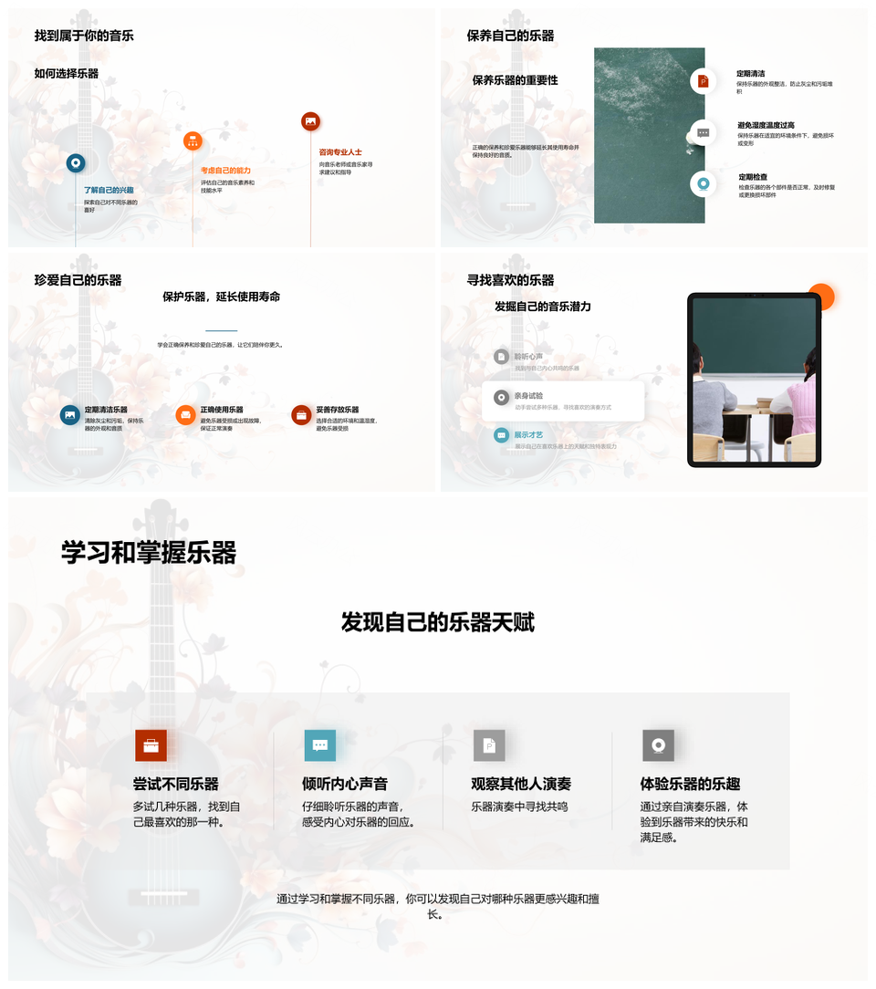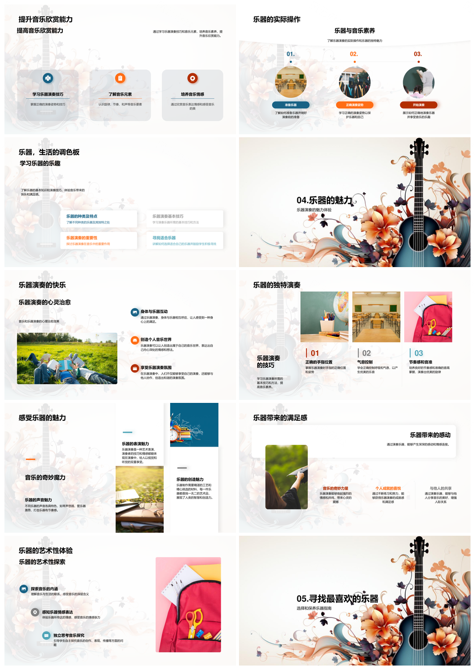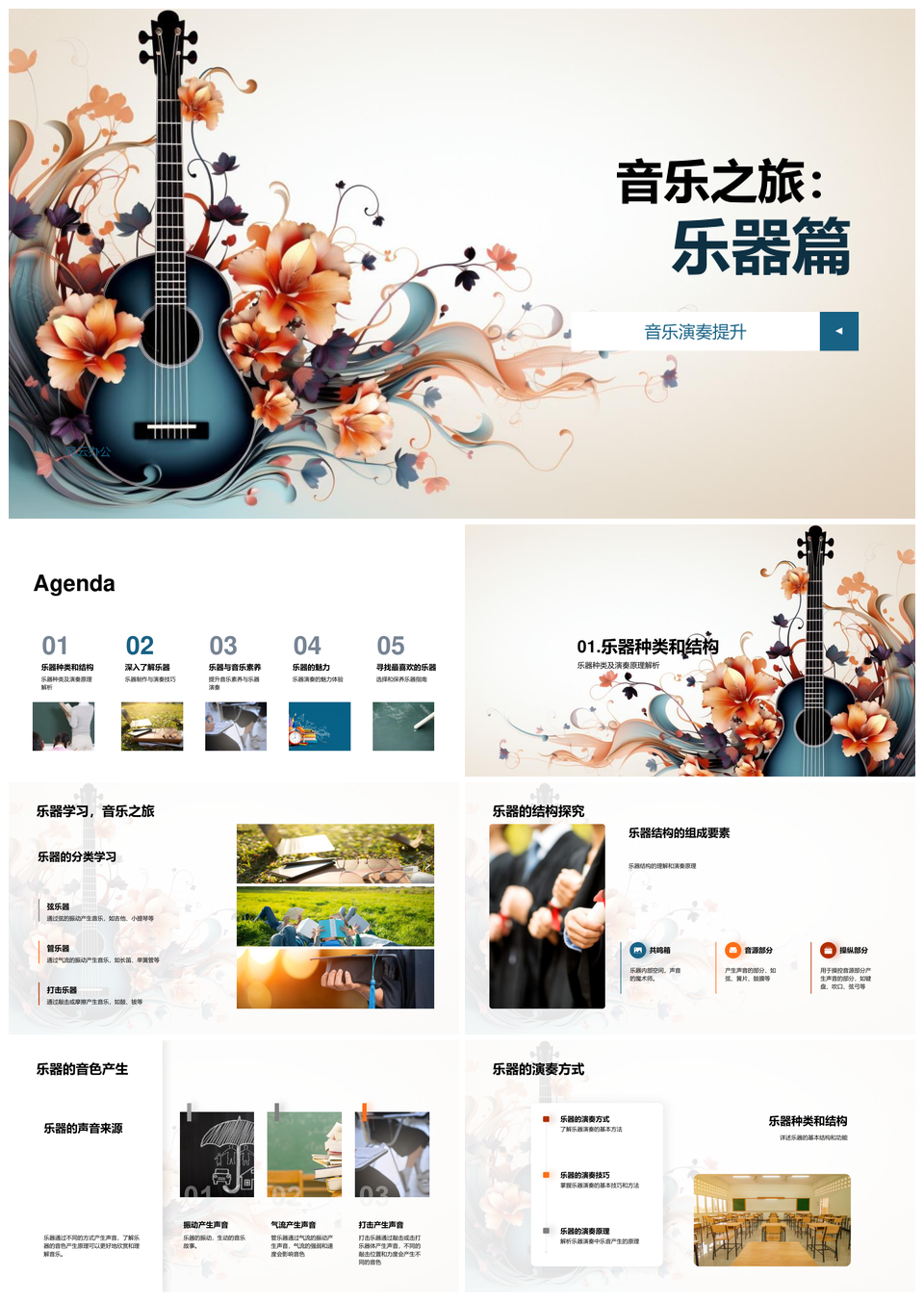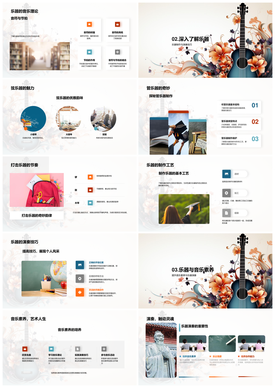 音乐素养与各类乐器演奏制作PPT模板推荐