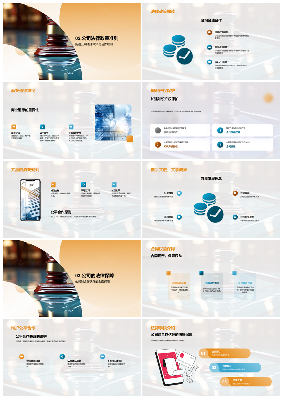 这是一张法律保障企业合作权益护商德守则PPT模板,包含法律、保障、企业、合作、权益、商德、守则等主题内容,也可用作法律保障企业合作、保障企业合作权益、法律保障企业权益、法律保障合作权益、法律保障护商守则、保障企业护商守则、企业合作权益护商、合作权益护商守则、保障企业合作、企业合作权益、合作权益护商、权益护商守则、法律保障权益、保障护商守则、护商守则保障等PPT场景使用。