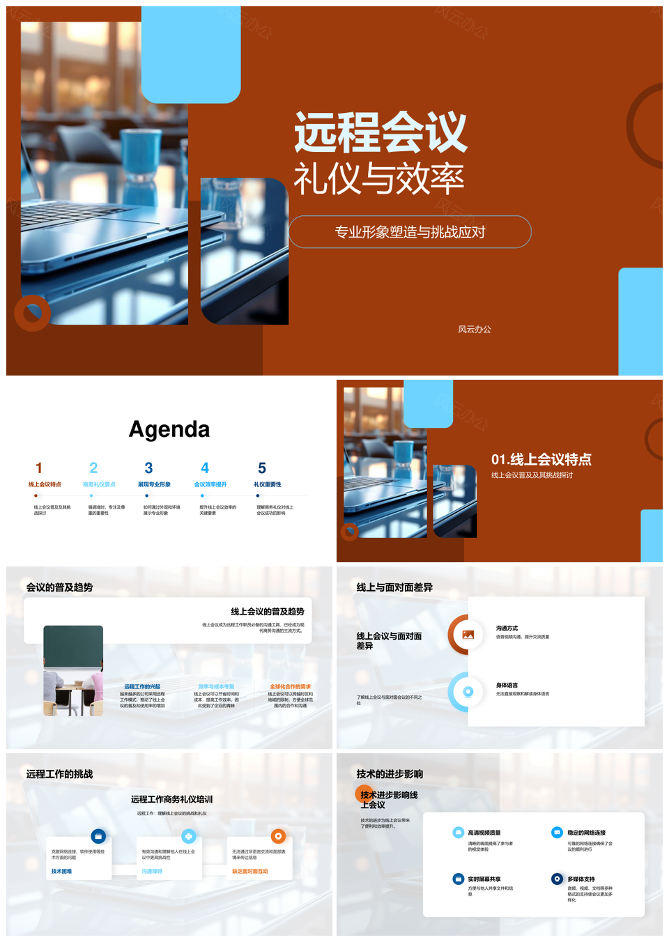 风云办公提供的远程会议礼仪与高效商务协作PPT模板,下载格式为pptx,一共33页,作品中文字及图均可以修改和编辑,图片更改请在作品中右键图片并更换,文字修改请直接点击文字进行修改。