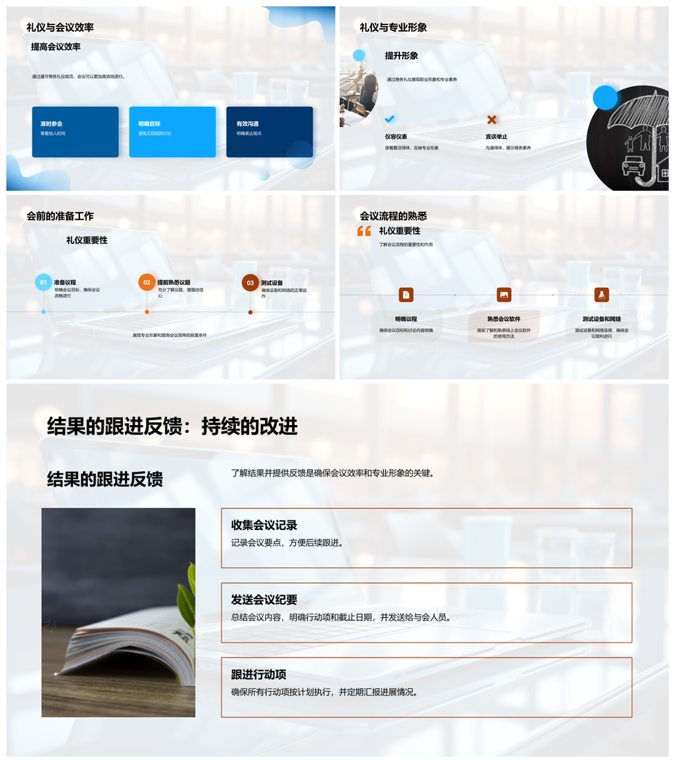 这是一张远程会议礼仪与高效商务协作PPT模板,包含远程会议、礼仪、高效、商务、协作等主题内容,也可用作远程会议礼仪高效、高效商务协作会议、商务协作远程会议、远程会议商务协作、会议礼仪高效商务、远程高效商务协作、会议高效商务协作、远程会议礼仪高效、高效商务协作远程、高效商务会议礼仪、高效会议商务协作、商务协作高效、远程高效协作、高效商务协作、远程会议商务等PPT场景使用。