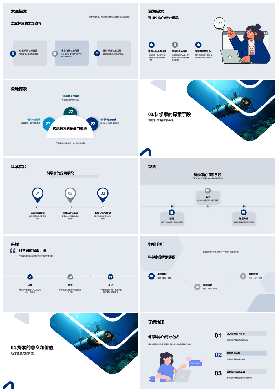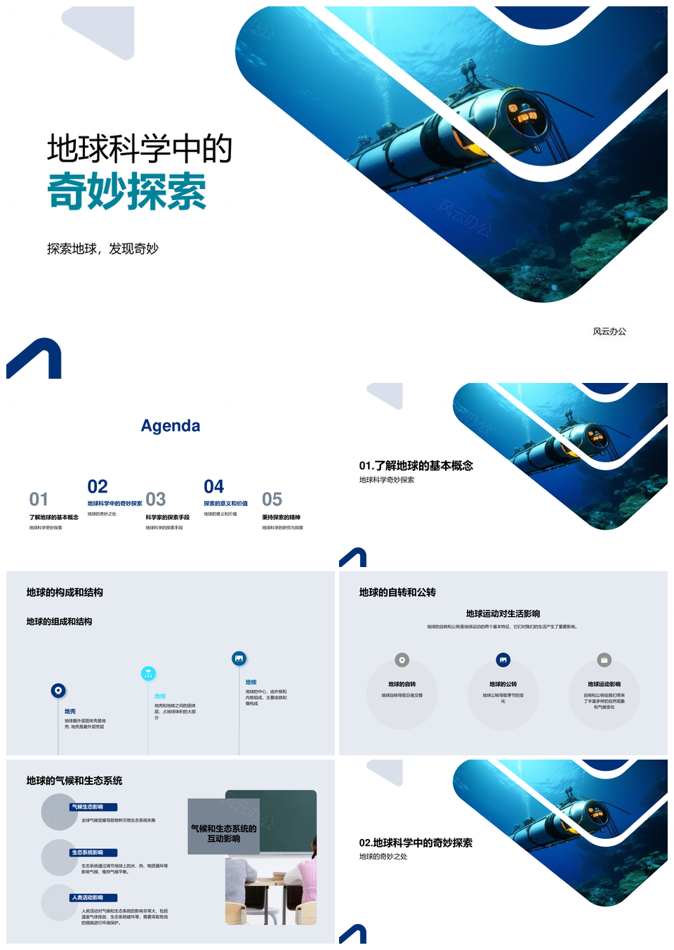 风云办公提供的地球科学探秘太空深海极地实验PPT模板,下载格式为pptx,一共25页,作品中文字及图均可以修改和编辑,图片更改请在作品中右键图片并更换,文字修改请直接点击文字进行修改。