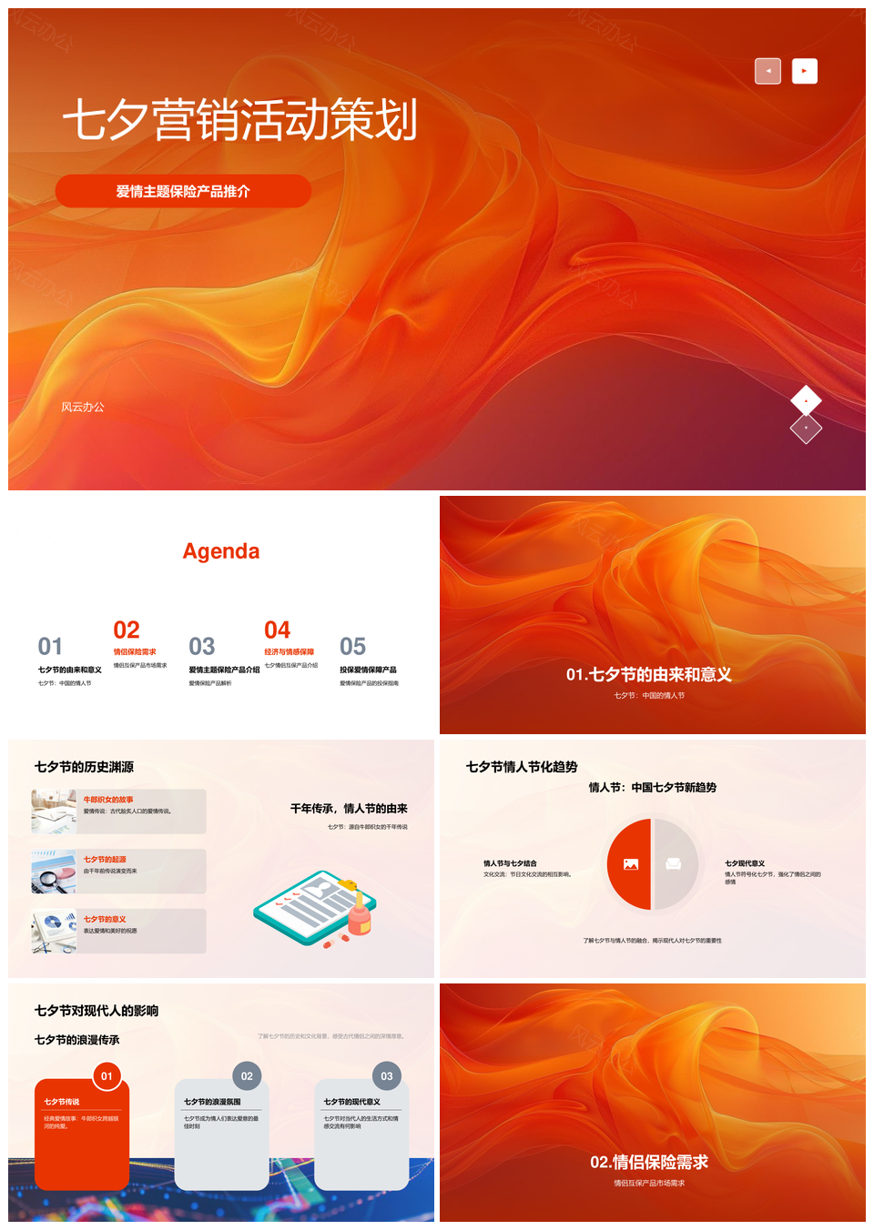 风云办公提供的七夕特惠爱情保险情侣互保营销策划PPT模板,下载格式为pptx,一共23页,作品中文字及图均可以修改和编辑,图片更改请在作品中右键图片并更换,文字修改请直接点击文字进行修改。