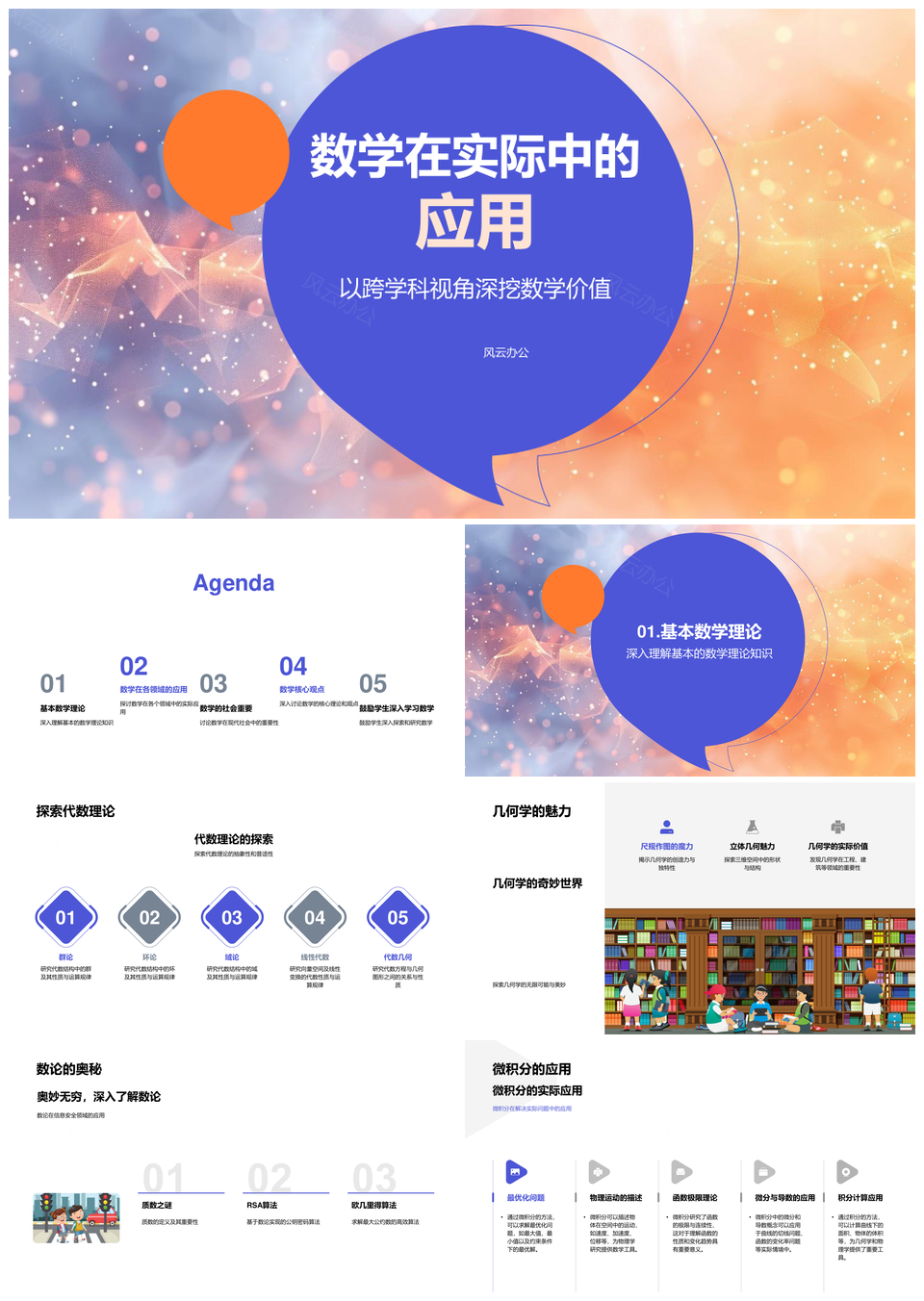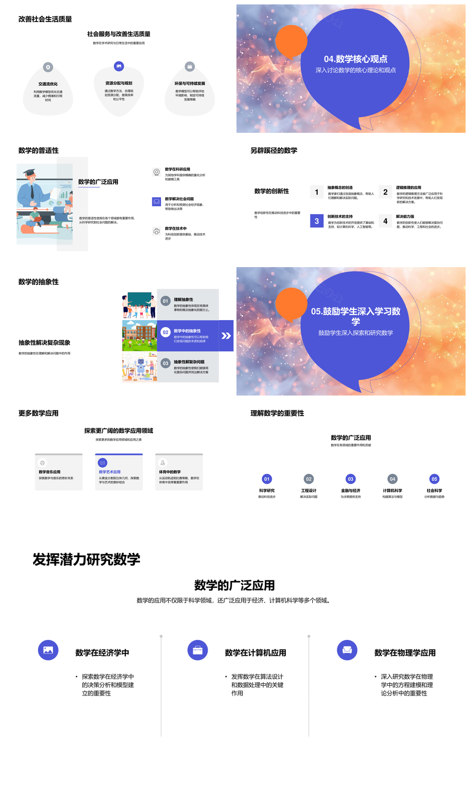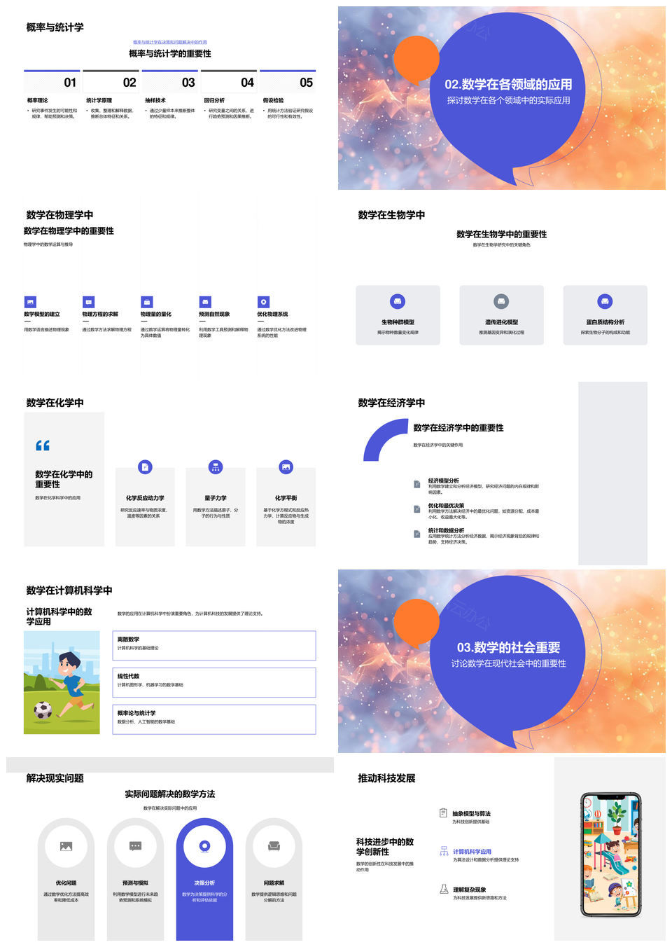 数学跨学科应用代数几何数论微积分统计PPT模板推荐