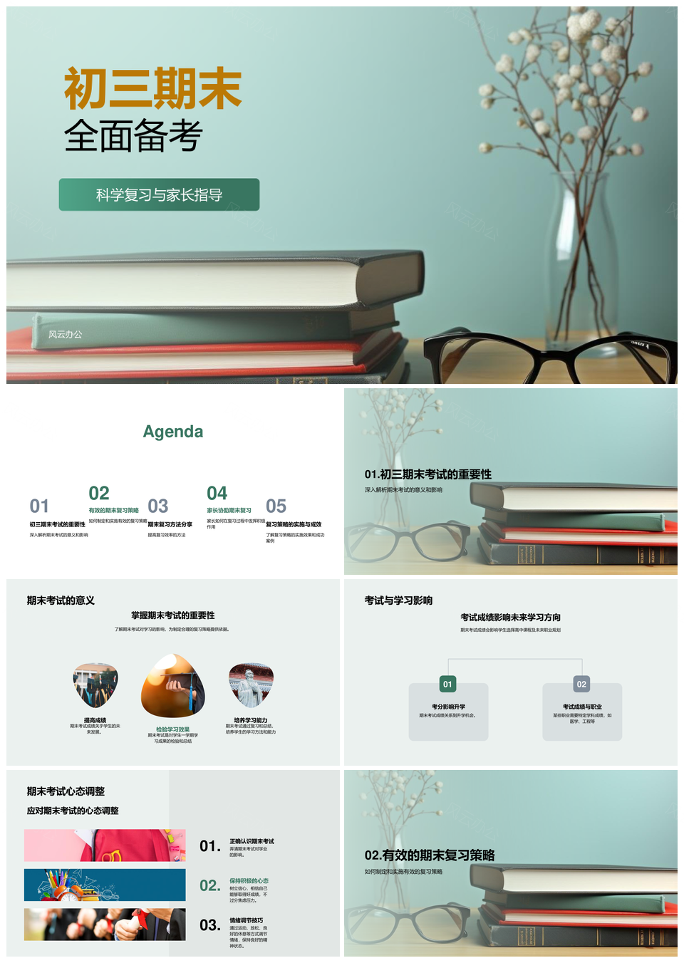 风云办公提供的初三科学高效复习家长指导期末备考PPT模板,下载格式为pptx,一共26页,作品中文字及图均可以修改和编辑,图片更改请在作品中右键图片并更换,文字修改请直接点击文字进行修改。