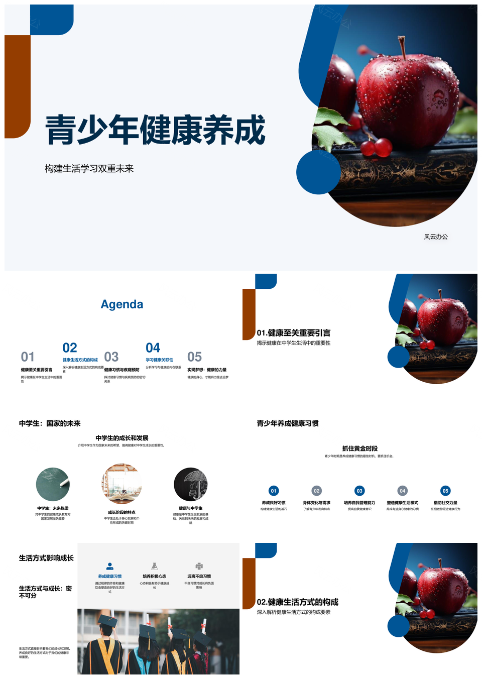 风云办公提供的青少年健康黄金时段助力学习生活未来PPT模板,下载格式为pptx,一共23页,作品中文字及图均可以修改和编辑,图片更改请在作品中右键图片并更换,文字修改请直接点击文字进行修改。