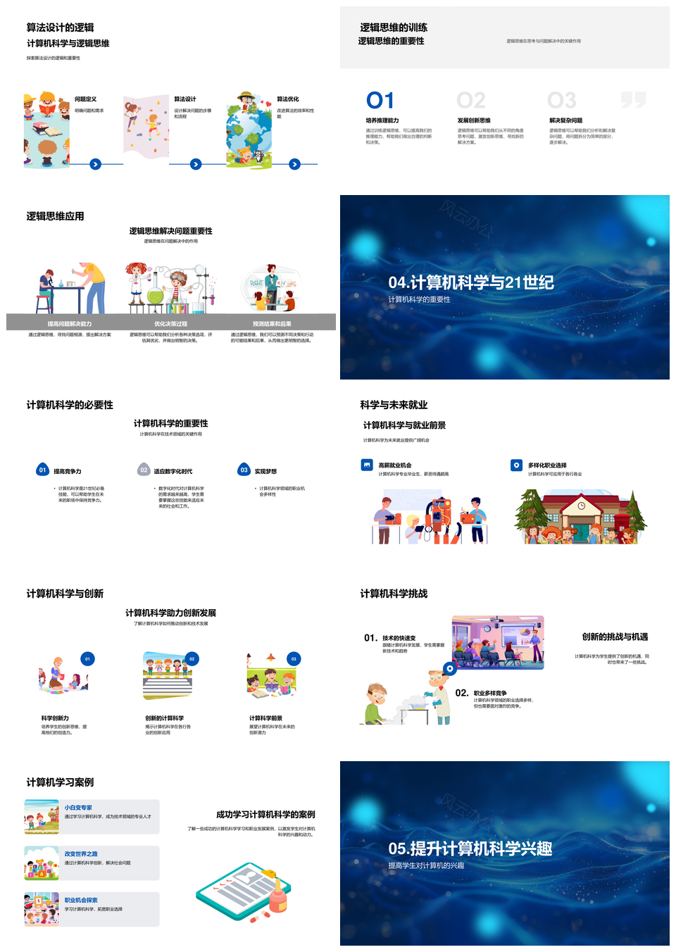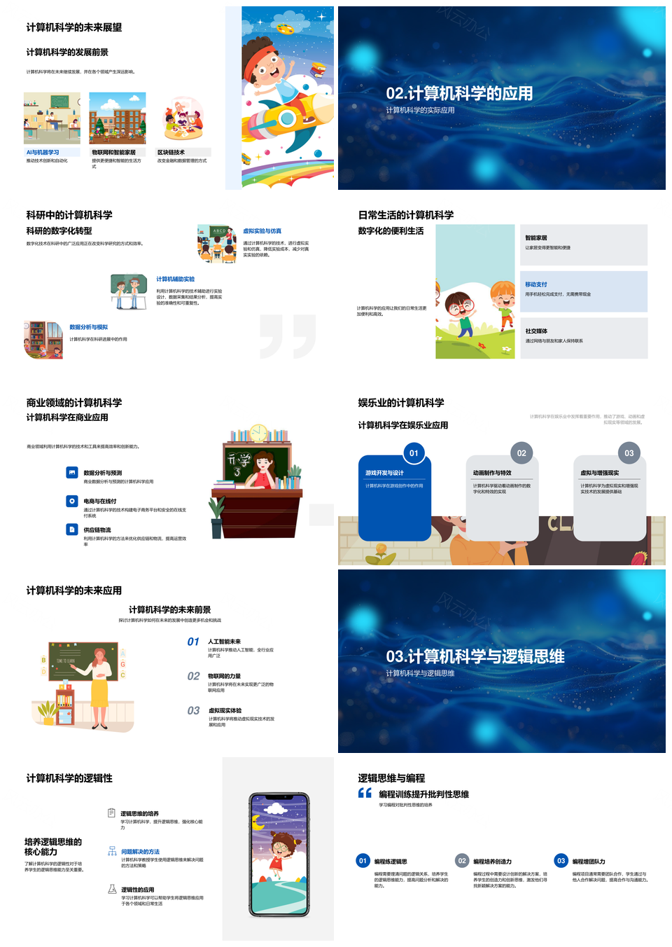 计算机科学教学编程逻辑职业科研商业娱乐应用PPT模板推荐