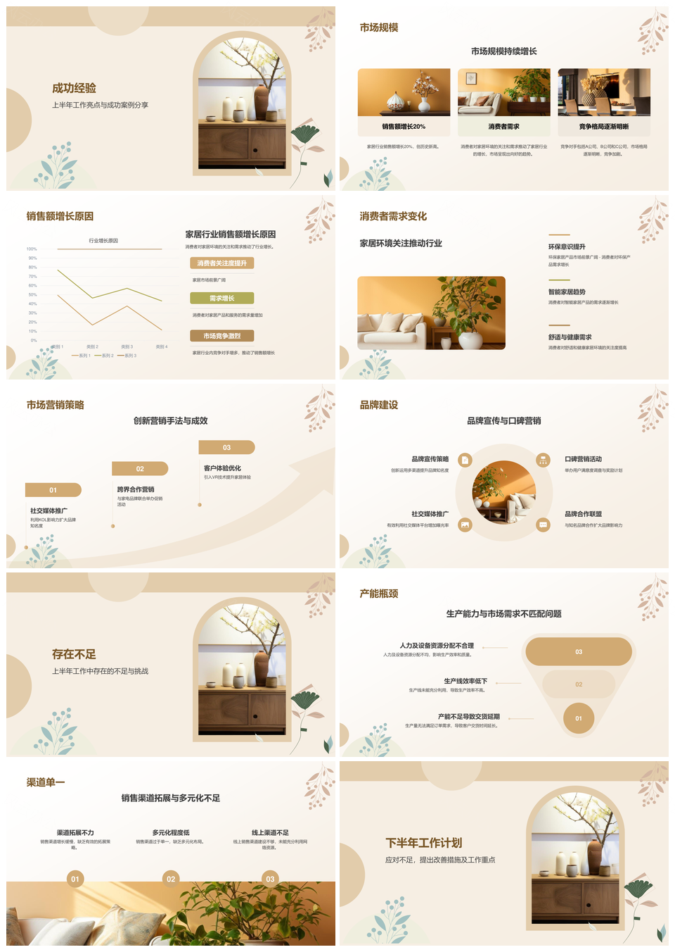 这是一张家居行业年中工作总结业绩回顾策略调整PPT模板,包含家居行业、年中工作、总结、业绩、回顾、策略、调整、工作总结等主题内容,也可用作家居行业年中工作总结业绩回顾、家居行业年中工作总结策略调整、家居行业年中业绩回顾策略调整、家居行业工作总结业绩回顾策略调整、年中工作总结业绩回顾策略调整、家居行业年中工作总结、家居行业年中业绩回顾、家居行业年中策略调整、家居行业工作总结业绩回顾、家居行业工作总结策略调整、家居行业业绩回顾策略调整、年中工作总结业绩回顾、年中工作总结策略调整、年中业绩回顾策略调整、工作总结业绩回顾策略调整等PPT场景使用。 风云办公提供的家居行业年中工作总结业绩回顾策略调整PPT模板,下载格式为pptx,一共22页,作品中文字及图均可以修改和编辑,图片更改请在作品中右键图片并更换,文字修改请直接点击文字进行修改。