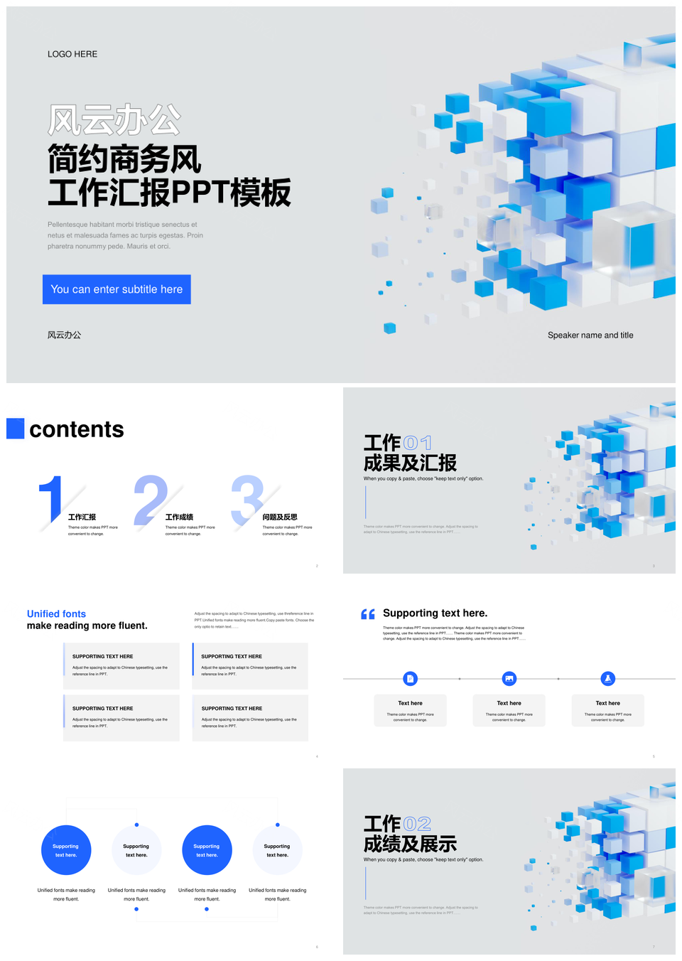 这是一张蓝色商务简约工作汇报主题PPT模板,包含蓝色、商务、简约、工作汇报、主题等主题内容,也可用作蓝色商务简约工作、商务简约工作汇报、简约工作汇报主题、蓝色商务简约、商务简约工作、简约工作汇报、工作汇报主题、蓝色商务、商务简约、简约工作、工作汇报、汇报主题、商务工作、商务汇报、工作主题等PPT场景使用。 风云办公提供的蓝色商务简约工作汇报主题PPT模板,下载格式为pptx,一共15页,作品中文字及图均可以修改和编辑,图片更改请在作品中右键图片并更换,文字修改请直接点击文字进行修改。