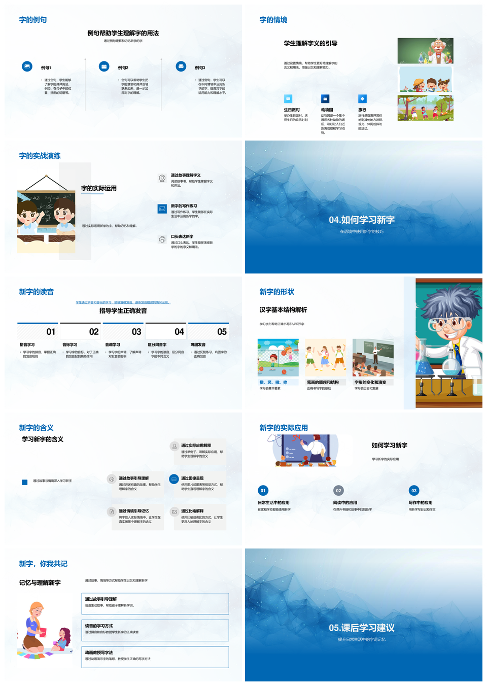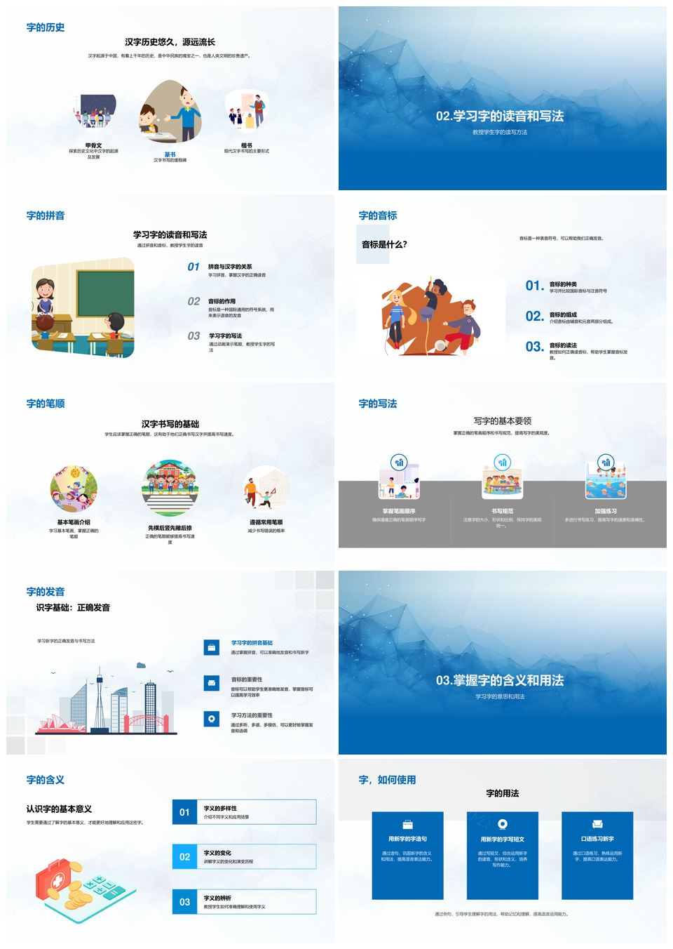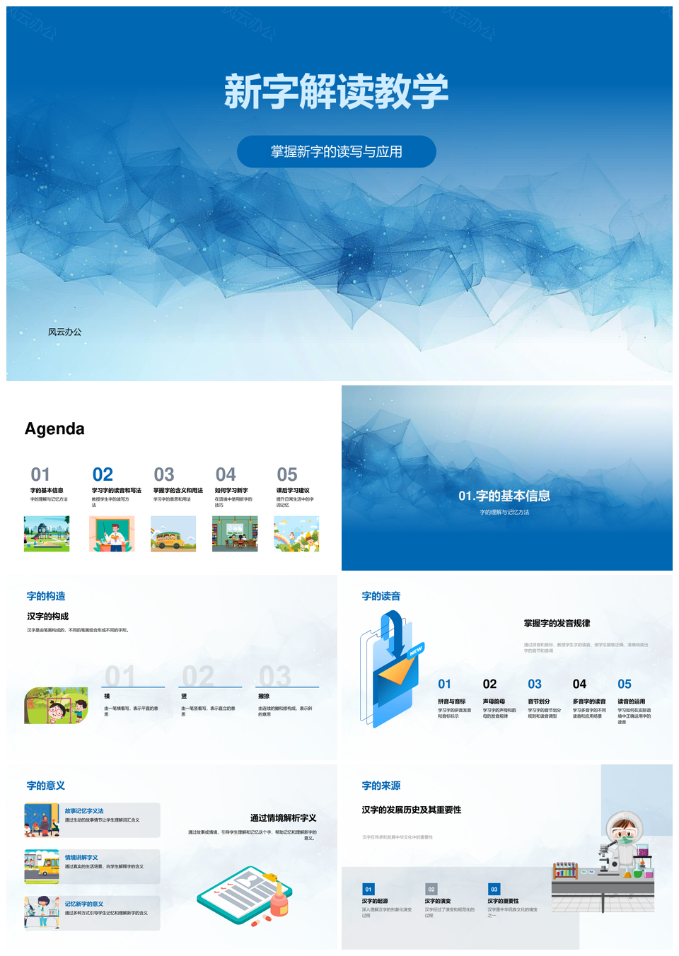 风云办公提供的小学新字读写构造发音教学应用学习PPT模板,下载格式为pptx,一共33页,作品中文字及图均可以修改和编辑,图片更改请在作品中右键图片并更换,文字修改请直接点击文字进行修改。
