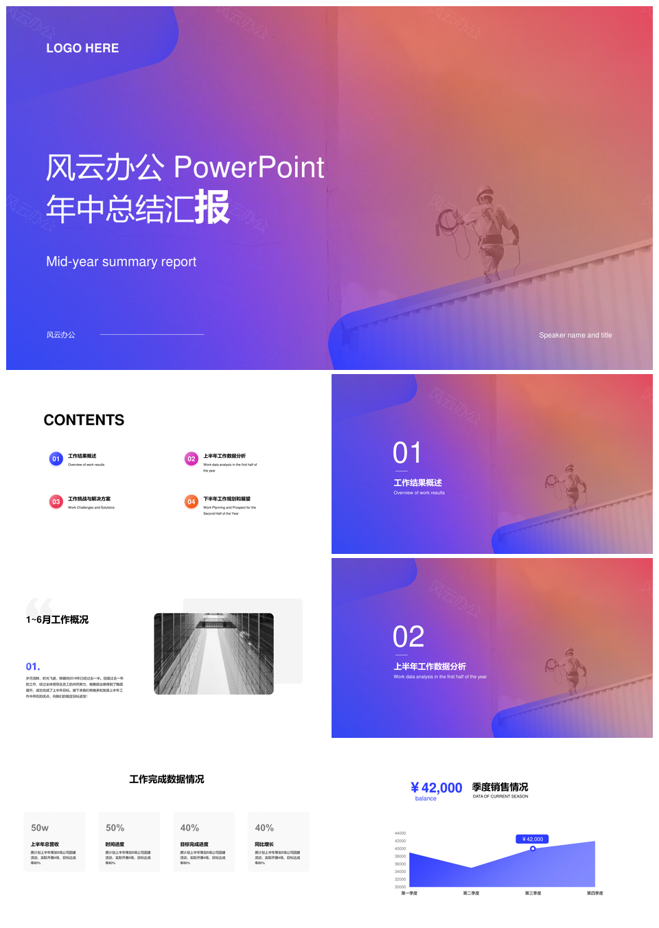 这是一张建筑办公年中工作总结商务渐变业绩汇报PPT模板,包含建筑、办公、年中工作总结、商务、渐变、业绩汇报、工作总结等主题内容,也可用作建筑办公年中工作总结、建筑办公商务渐变业绩、商务渐变业绩汇报、办公年中工作总结、建筑办公年中总结、建筑办公商务渐变、建筑商务渐变业绩、办公商务渐变业绩、建筑办公商务业绩、建筑办公业绩汇报、年中工作总结汇报、建筑工作总结、商务业绩汇报、建筑商务渐变、办公业绩汇报等PPT场景使用。 风云办公提供的建筑办公年中工作总结商务渐变业绩汇报PPT模板,下载格式为pptx,一共16页,作品中文字及图均可以修改和编辑,图片更改请在作品中右键图片并更换,文字修改请直接点击文字进行修改。