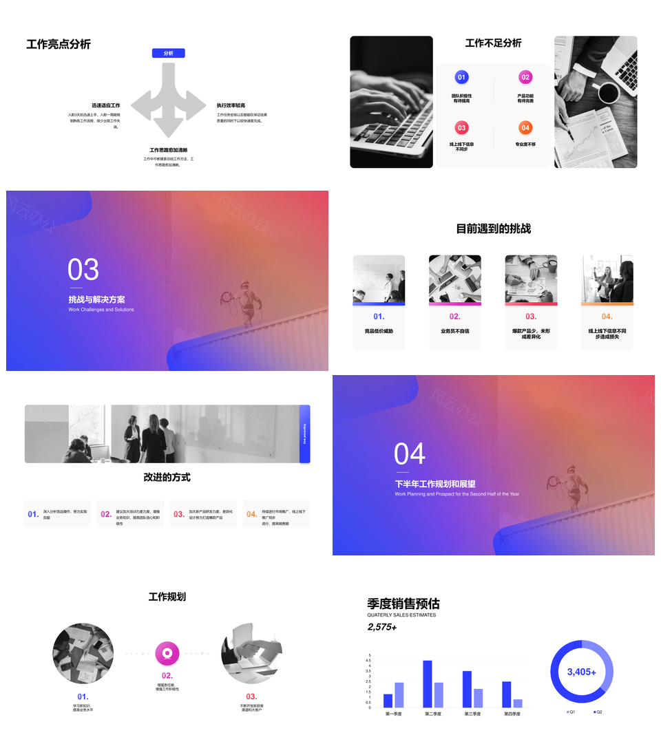 彩色时尚简约办公商务年中工作总结汇报动态PPT模板