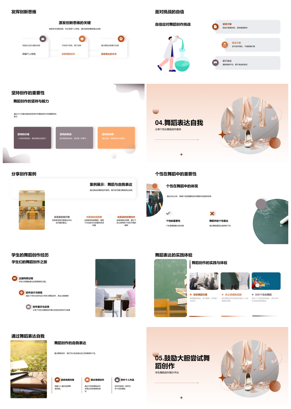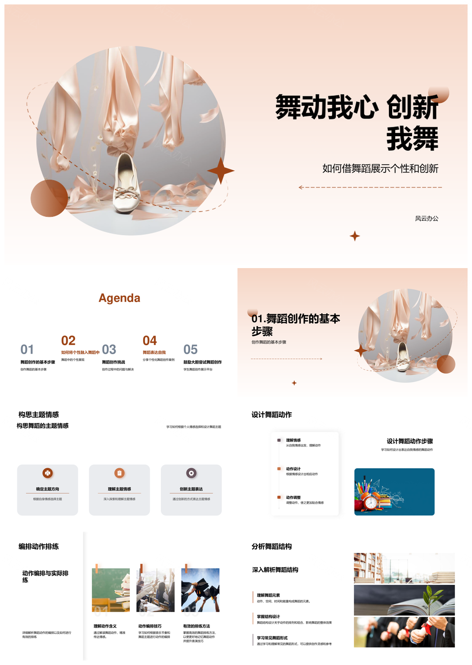 这是一张足尖心韵创编个性新舞PPT模板,包含足尖、心韵、创编、个性、新舞等主题内容,也可用作足尖心韵创编新舞、心韵创编个性新舞、足尖心韵创编、心韵创编个性、创编个性新舞、心韵创编新舞、足尖创编新舞、足尖心韵新舞、足尖个性新舞、足尖心韵、足尖新舞、心韵创编、创编新舞、个性新舞、心韵新舞等PPT场景使用。 风云办公提供的足尖心韵创编个性新舞PPT模板,下载格式为pptx,一共33页,作品中文字及图均可以修改和编辑,图片更改请在作品中右键图片并更换,文字修改请直接点击文字进行修改。