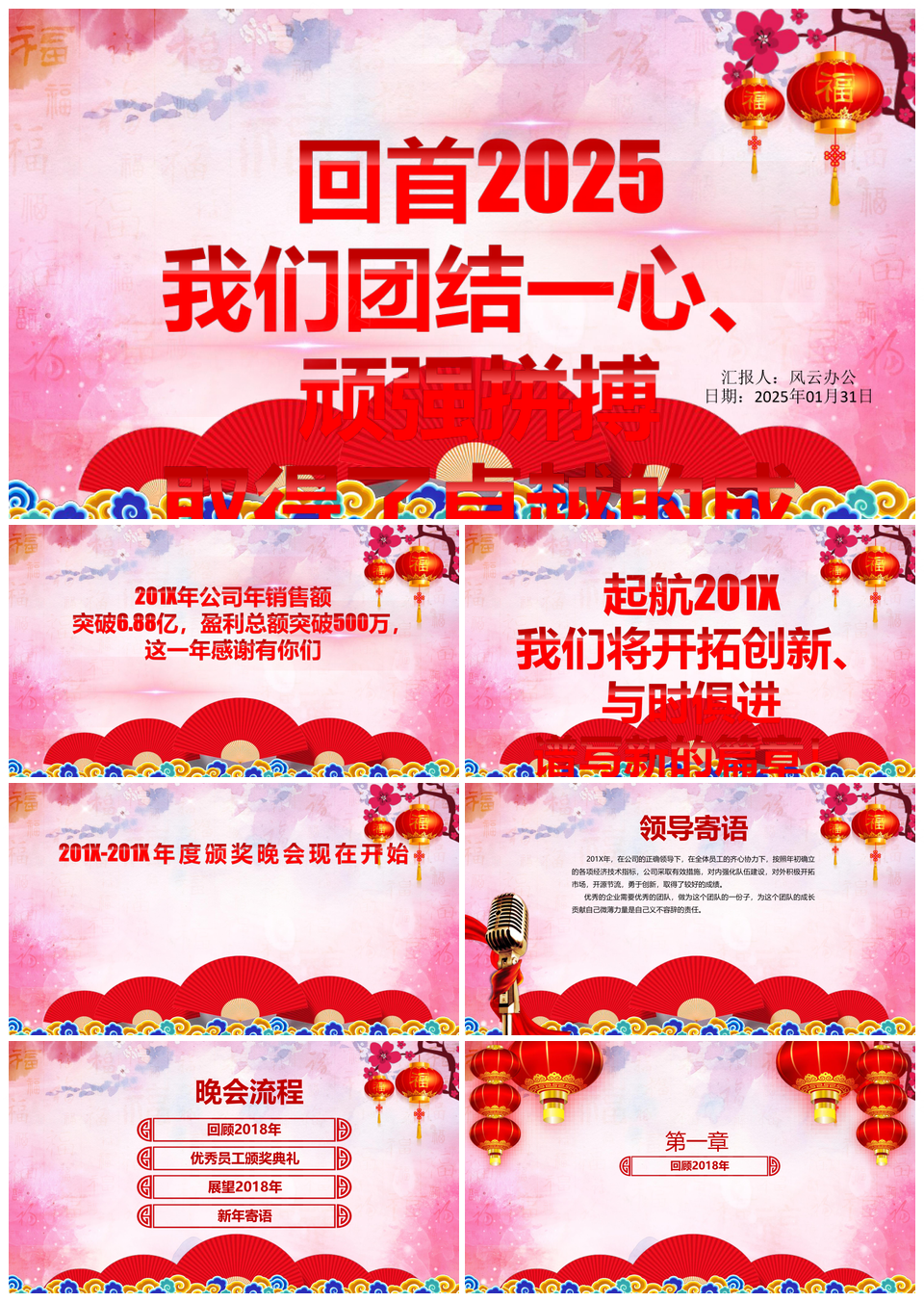 2025回首我们团结一心顽强拼搏取得了卓越的成绩PPT模板推荐