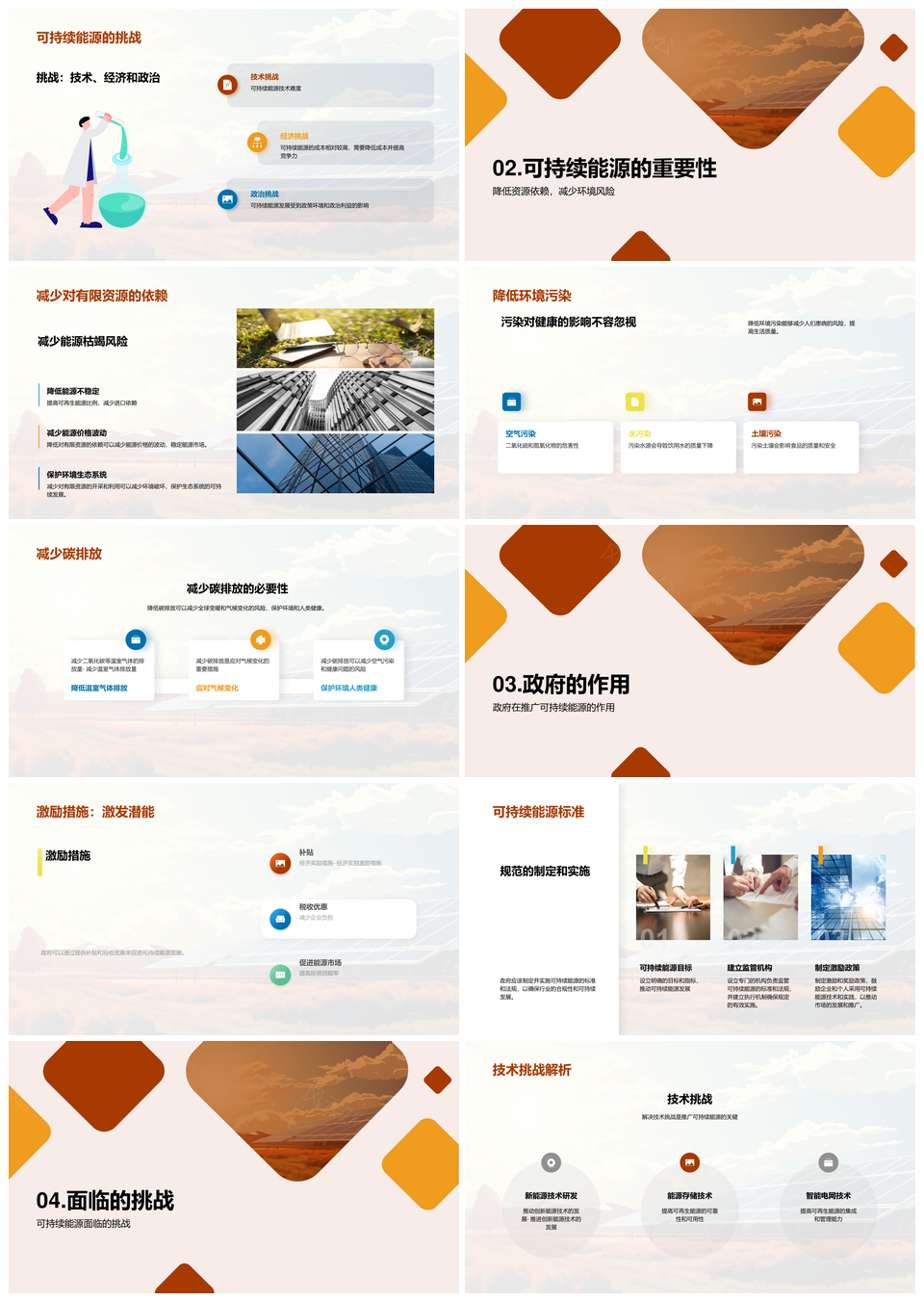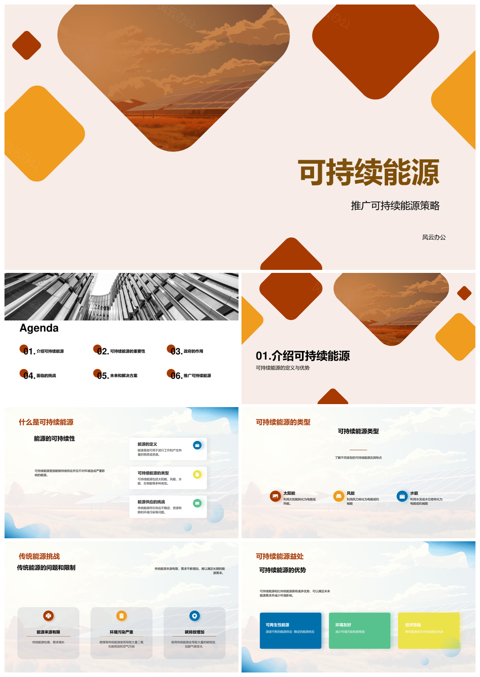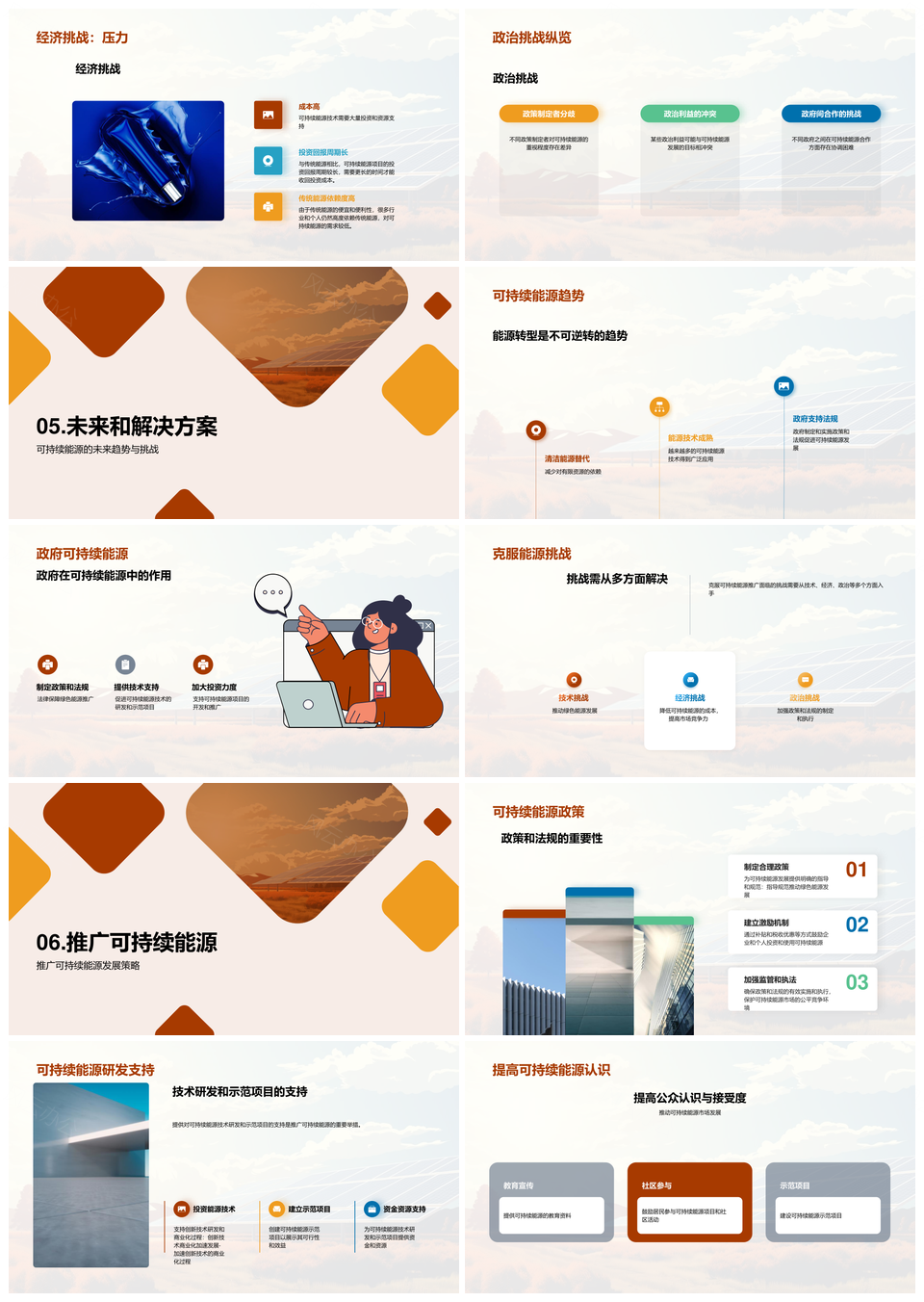 这是一张可持续能源政府推广策略环保挑战太阳能PPT模板,包含可持续能源、政府、推广策略、环保、挑战、太阳能等主题内容,也可用作可持续能源政府推广策略环保挑战、可持续能源政府推广策略、政府推广策略环保挑战、推广策略环保挑战太阳能、可持续能源政府推广、政府推广策略环保、可持续能源环保挑战、推广策略环保挑战、政府推广策略太阳能、环保挑战太阳能、可持续能源政府、政府推广策略、推广策略环保、环保挑战太阳能、政府推广等PPT场景使用。 风云办公提供的可持续能源政府推广策略环保挑战太阳能PPT模板,下载格式为pptx,一共28页,作品中文字及图均可以修改和编辑,图片更改请在作品中右键图片并更换,文字修改请直接点击文字进行修改。