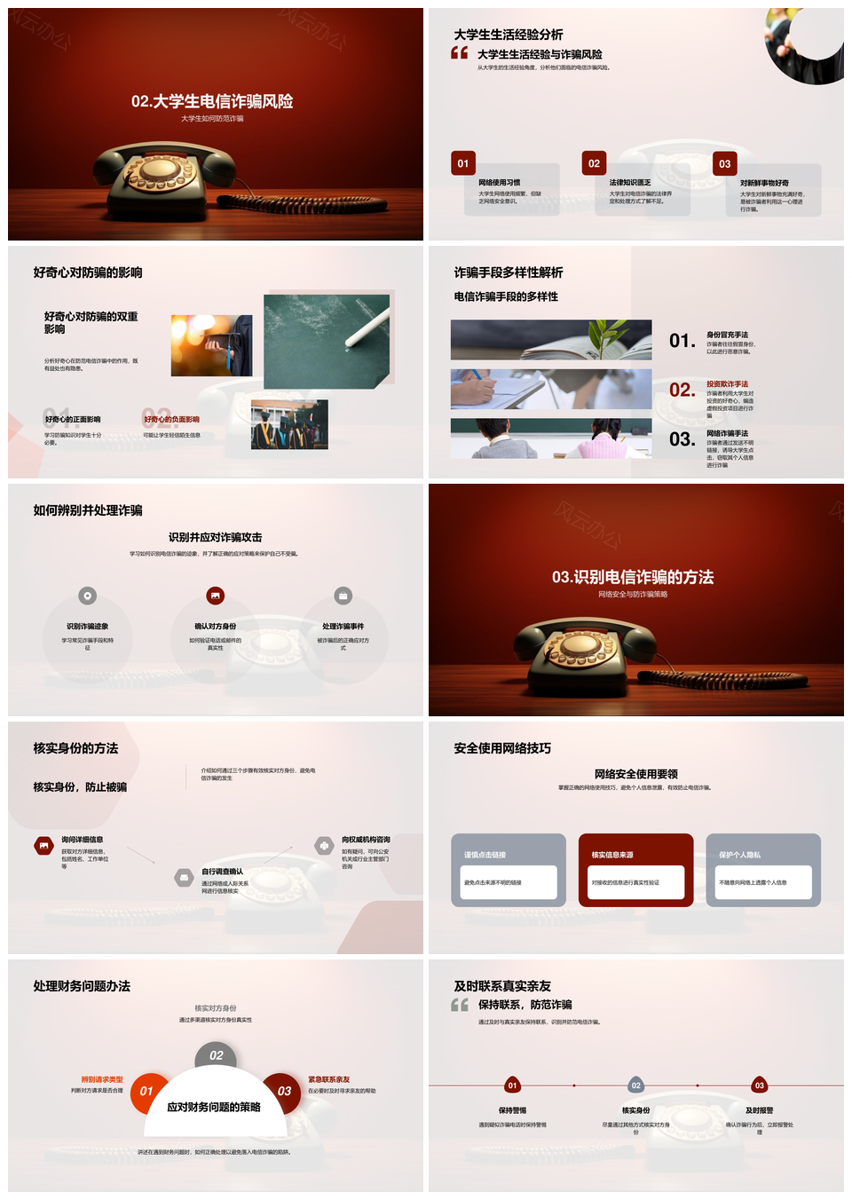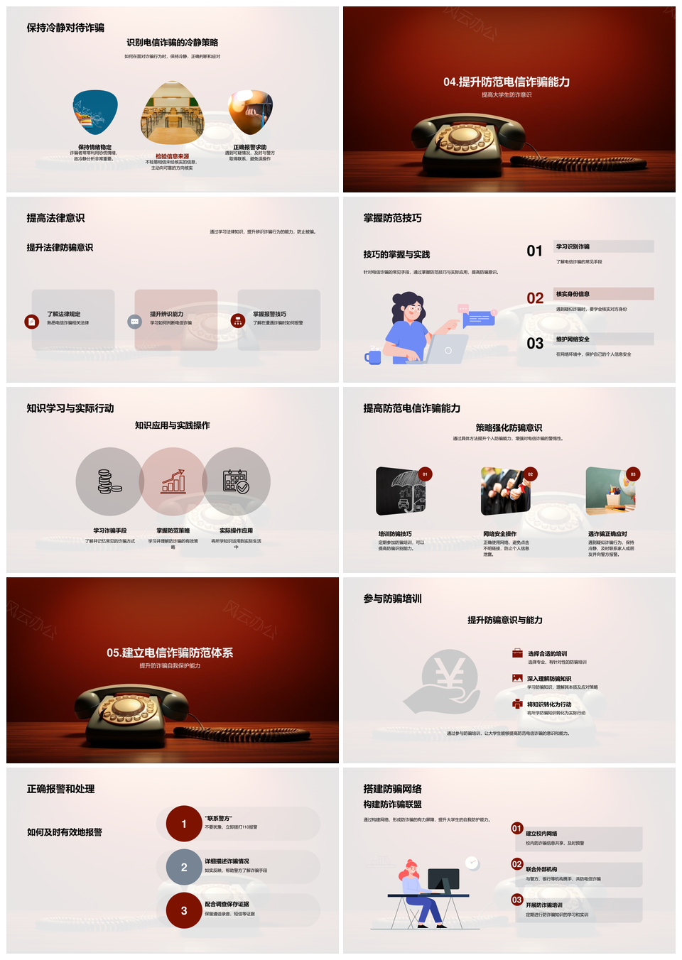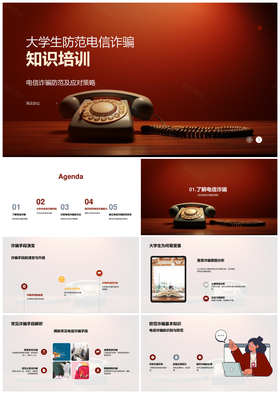 风云办公提供的大学生防范电信诈骗法律安全策略PPT模板,下载格式为pptx,一共29页,作品中文字及图均可以修改和编辑,图片更改请在作品中右键图片并更换,文字修改请直接点击文字进行修改。