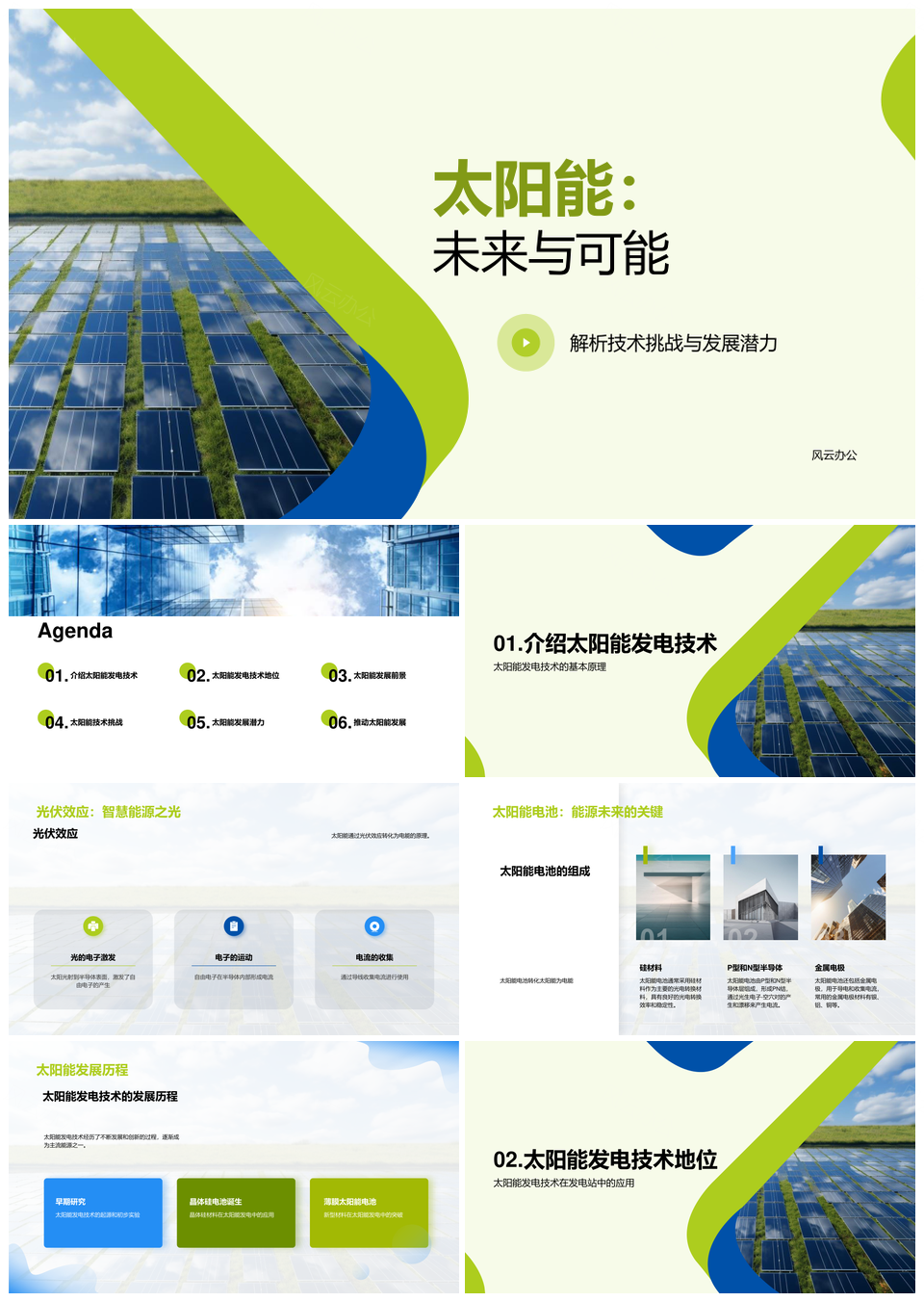 这是一张太阳能发电技术前景挑战与能源工程师发电站应用PPT模板,包含太阳能发电技术、前景、挑战、能源、工程师、发电站、应用等主题内容,也可用作太阳能发电技术前景、发电技术前景挑战、太阳能发电技术、发电技术前景、技术前景挑战、能源工程师发电站应用、太阳能发电、发电技术、技术前景、前景挑战、能源工程师发电站、发电站应用、太阳能技术、技术挑战、技术应用等PPT场景使用。 风云办公提供的太阳能发电技术前景挑战与能源工程师发电站应用PPT模板,下载格式为pptx,一共27页,作品中文字及图均可以修改和编辑,图片更改请在作品中右键图片并更换,文字修改请直接点击文字进行修改。