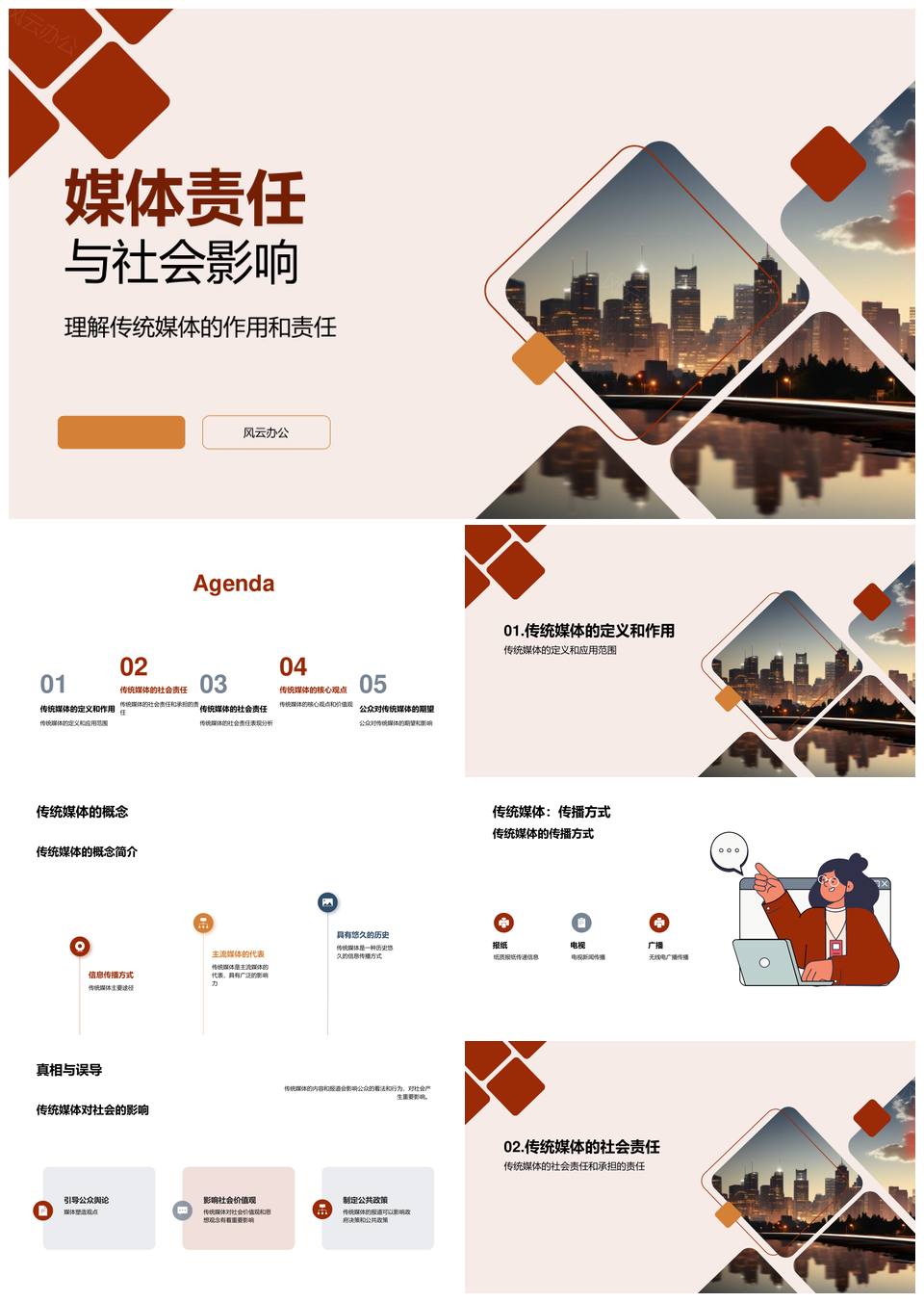 风云办公提供的传统媒体社会责任定义与传播影响PPT模板,下载格式为pptx,一共23页,作品中文字及图均可以修改和编辑,图片更改请在作品中右键图片并更换,文字修改请直接点击文字进行修改。