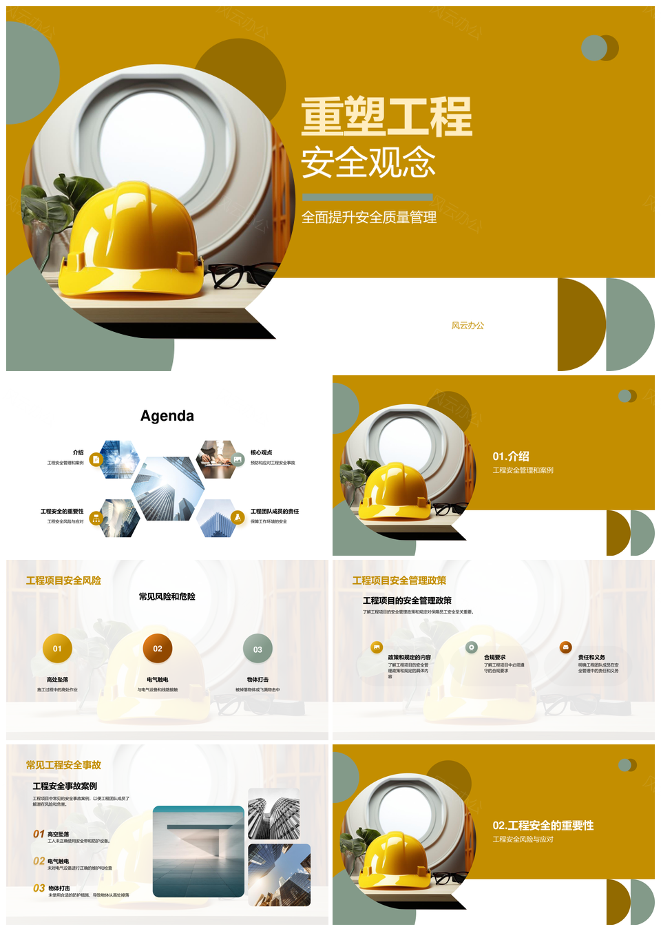 风云办公提供的工程安全培训防风险护员工筑工地安全PPT模板,下载格式为pptx,一共18页,作品中文字及图均可以修改和编辑,图片更改请在作品中右键图片并更换,文字修改请直接点击文字进行修改。