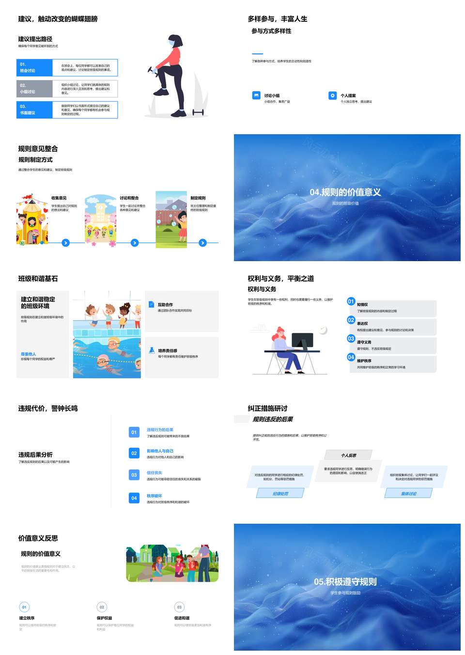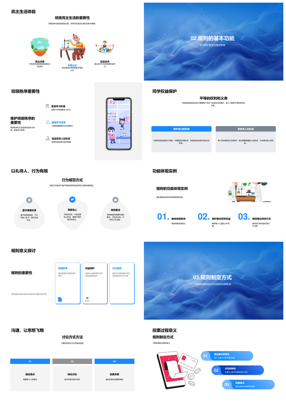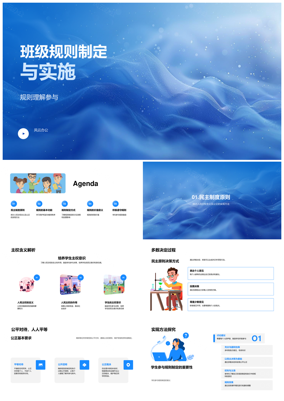 风云办公提供的民主公正学生共定班级规则实施PPT模板,下载格式为pptx,一共33页,作品中文字及图均可以修改和编辑,图片更改请在作品中右键图片并更换,文字修改请直接点击文字进行修改。