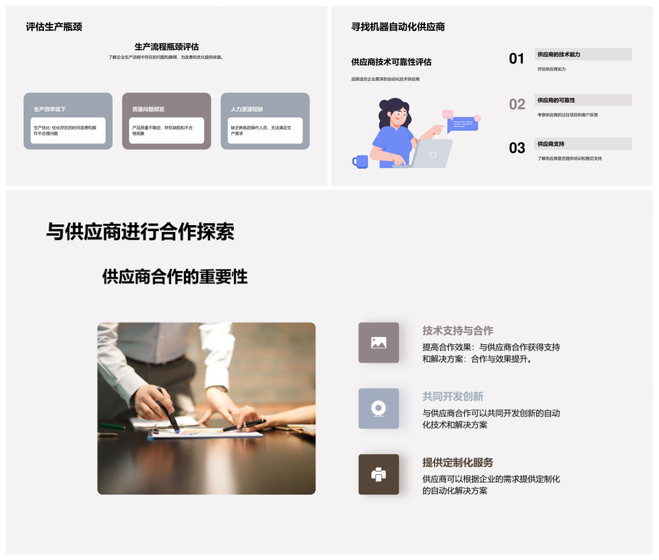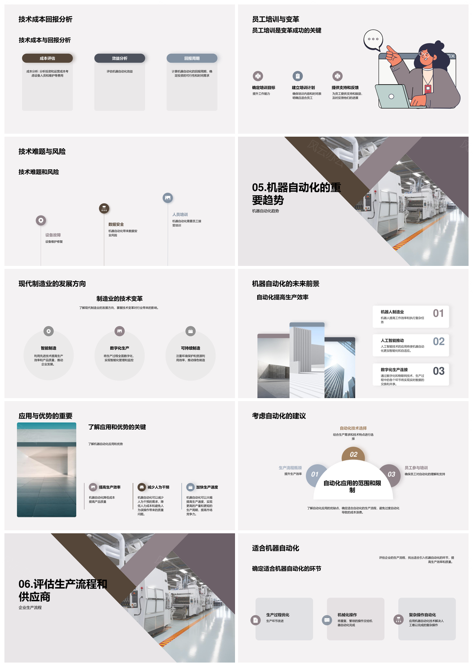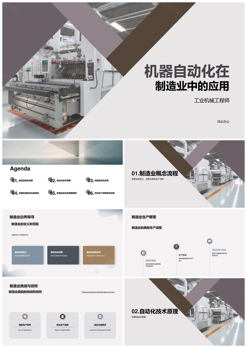 这是一张制造业机器自动化应用工程师设备流程挑战目标PPT模板,包含制造业、机器、自动化、应用、工程师、设备、流程、挑战、目标等主题内容,也可用作制造业机器自动化应用、机器自动化应用工程师、自动化应用工程师设备、应用工程师设备流程、工程师设备流程挑战、设备流程挑战目标、制造业自动化应用工程师、自动化工程师设备流程、制造业机器自动化、机器自动化工程师、应用工程师设备、自动化应用设备、工程师流程挑战、设备挑战目标、制造业自动化应用等PPT场景使用。 风云办公提供的制造业机器自动化应用工程师设备流程挑战目标PPT模板,下载格式为pptx,一共31页,作品中文字及图均可以修改和编辑,图片更改请在作品中右键图片并更换,文字修改请直接点击文字进行修改。
