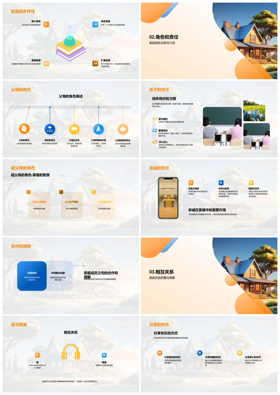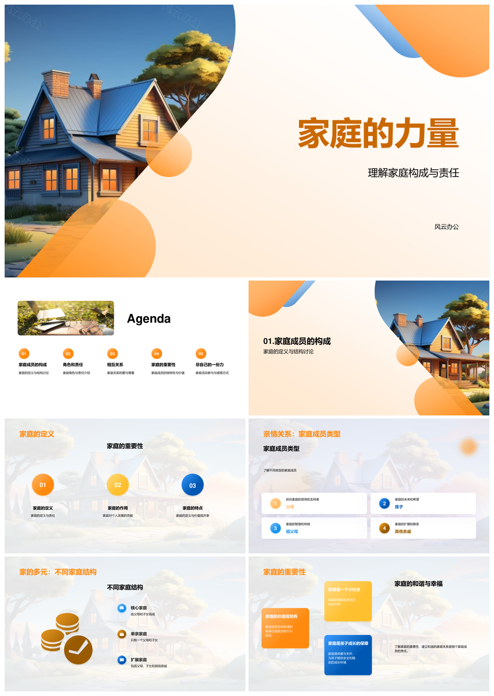 风云办公提供的家庭树责任角色共筑和谐成长PPT模板,下载格式为pptx,一共33页,作品中文字及图均可以修改和编辑,图片更改请在作品中右键图片并更换,文字修改请直接点击文字进行修改。