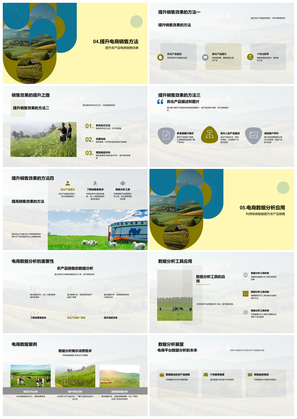 电商农营战略革新农品销售数据展示范围PPT模板推荐