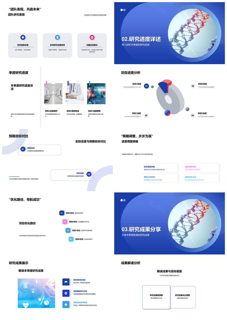 季度生物研究目标进展成果挑战调整述评PPT模板推荐