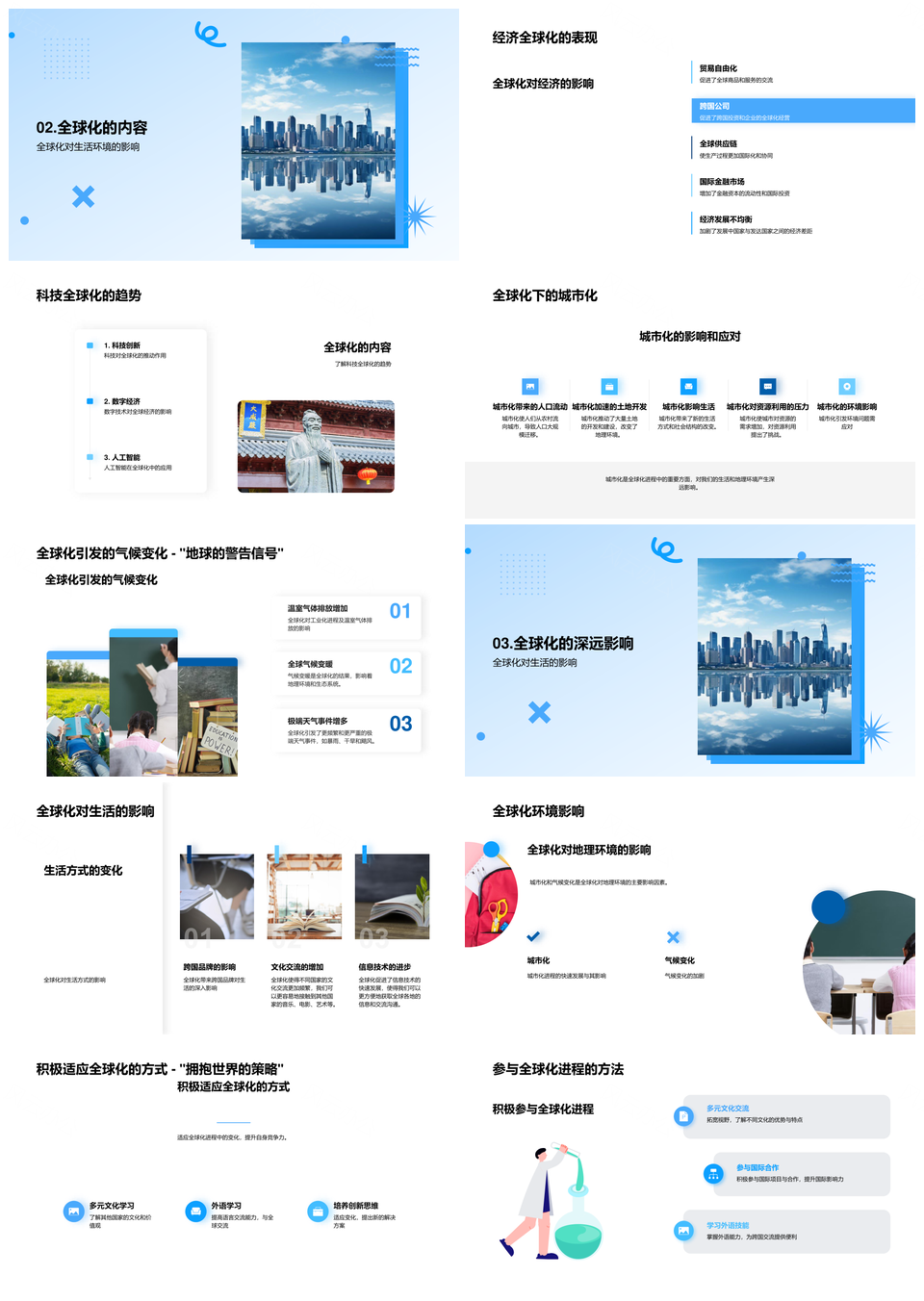 全球化驱动地理城市化气候经济科技生活演变PPT模板推荐