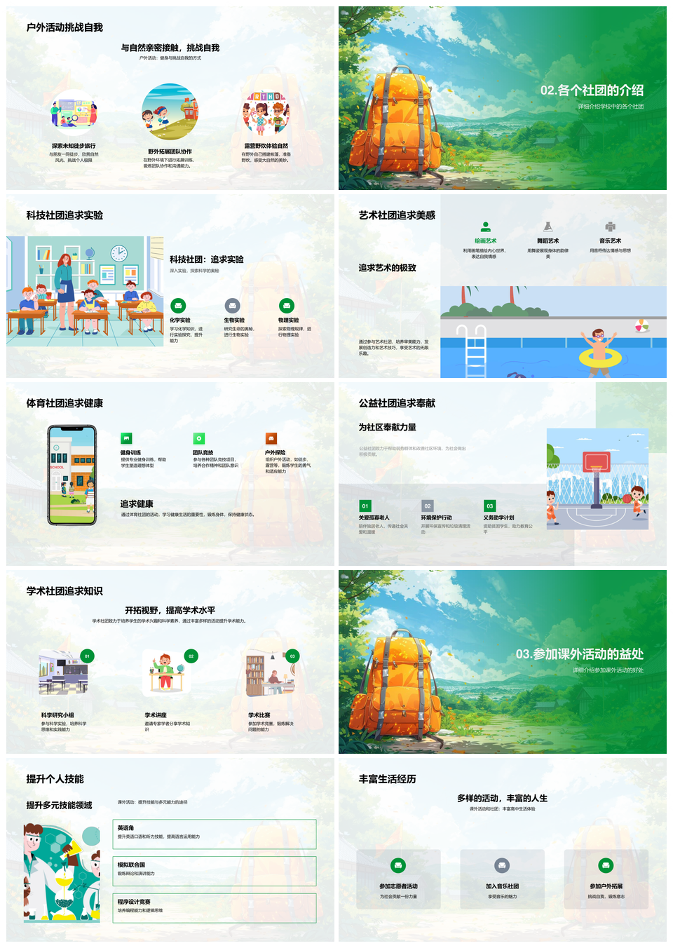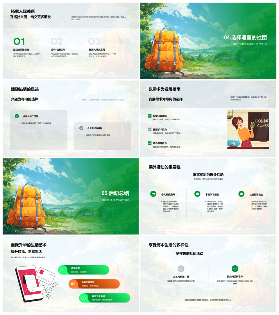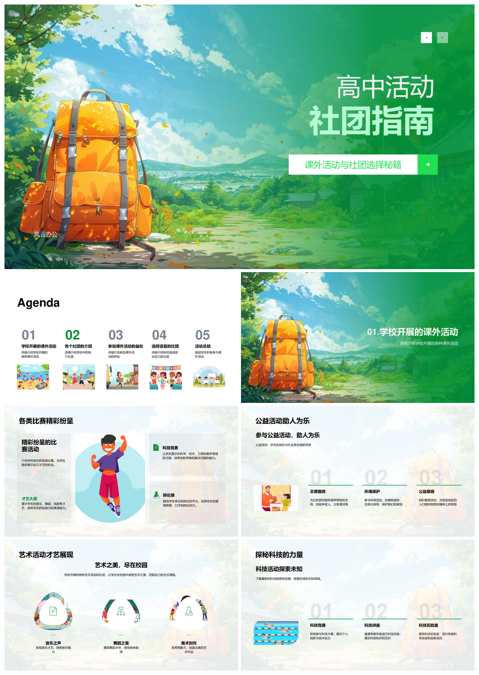 2025高中课外活动社团选择指南及各类比赛公益艺术科技户外活动PPT模板推荐