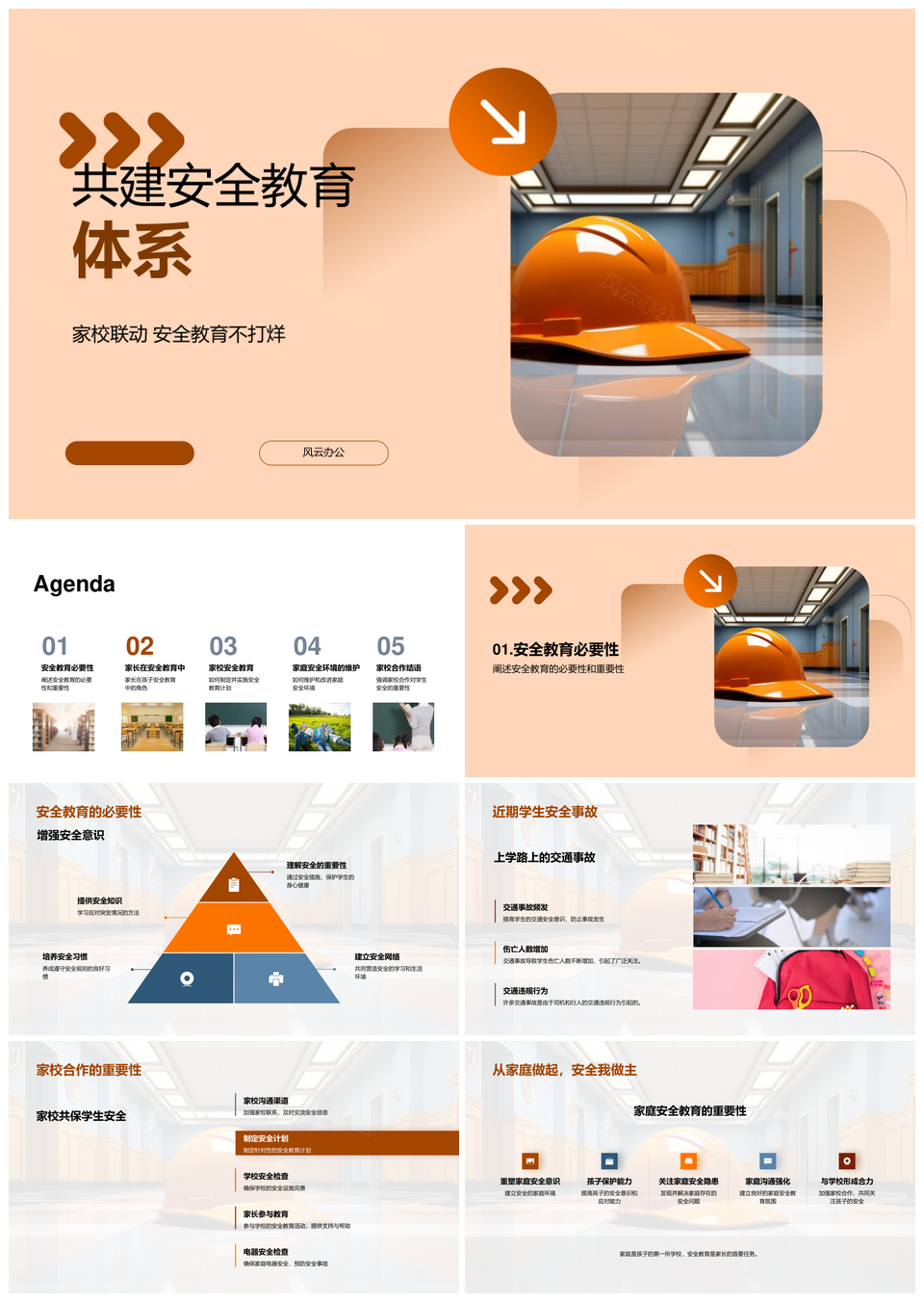 风云办公提供的家校共筑学生安全教育体系PPT模板,下载格式为pptx,一共28页,作品中文字及图均可以修改和编辑,图片更改请在作品中右键图片并更换,文字修改请直接点击文字进行修改。