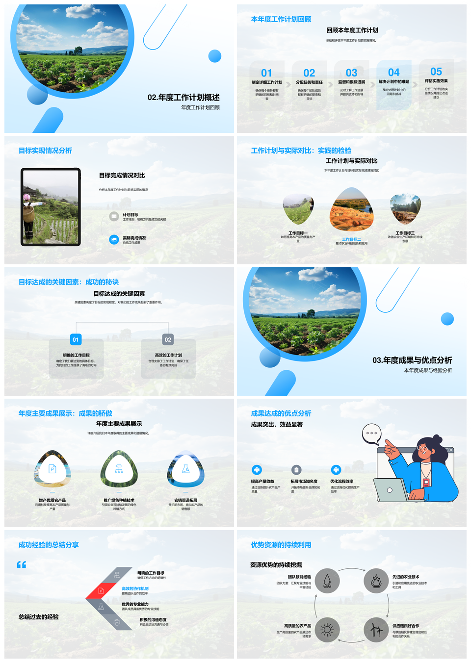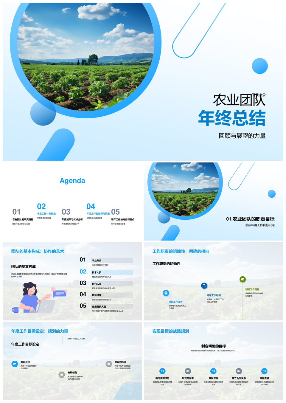 农业团队年终工作目标成果与农田经验总结PPT模板推荐