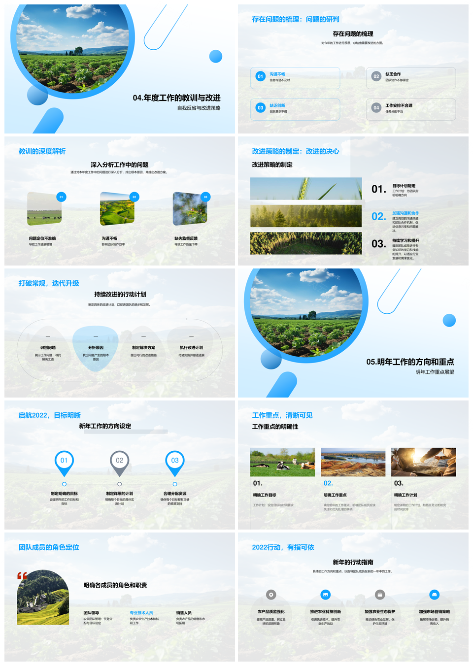 这是一张农业团队年终工作目标成果与农田经验总结PPT模板,包含农业团队、年终工作、目标成果、农田经验、总结等主题内容,也可用作农业团队年终工作目标成果、农业团队工作目标成果农田、年终工作目标成果农田、工作目标成果农田经验总结、农业团队年终农田经验总结、农业团队成果农田经验总结、农业团队年终工作目标、农业团队工作目标成果、年终工作目标成果、工作目标成果农田、成果农田经验总结、农业团队农田经验总结、年终工作目标、工作目标成果、成果农田等PPT场景使用。 风云办公提供的农业团队年终工作目标成果与农田经验总结PPT模板,下载格式为pptx,一共28页,作品中文字及图均可以修改和编辑,图片更改请在作品中右键图片并更换,文字修改请直接点击文字进行修改。