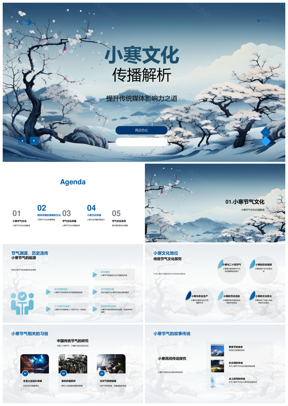 风云办公提供的小寒节气文化传播策略与起源解析PPT模板,下载格式为pptx,一共28页,作品中文字及图均可以修改和编辑,图片更改请在作品中右键图片并更换,文字修改请直接点击文字进行修改。