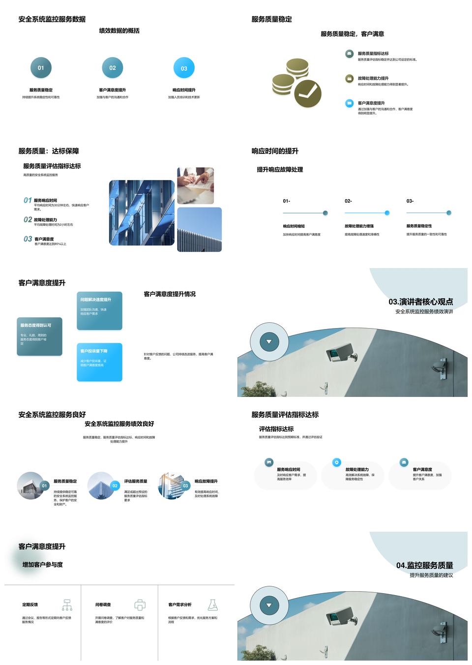 这是一张安全监控服务绩效评估专家客户满意度指标PPT模板,包含安全监控、服务绩效、评估专家、客户、满意度、指标等主题内容,也可用作安全监控服务绩效评估专家、服务绩效评估专家客户满意度、绩效评估专家客户满意度指标、安全监控服务绩效评估、服务绩效评估专家、绩效评估专家客户满意度、专家客户满意度指标、安全监控服务绩效评估客户满意度、安全监控服务客户满意度指标、服务绩效评估客户满意度指标、安全监控服务专家客户满意度、安全监控服务、服务绩效评估、绩效评估专家、专家客户满意度等PPT场景使用。 风云办公提供的安全监控服务绩效评估专家客户满意度指标PPT模板,下载格式为pptx,一共22页,作品中文字及图均可以修改和编辑,图片更改请在作品中右键图片并更换,文字修改请直接点击文字进行修改。