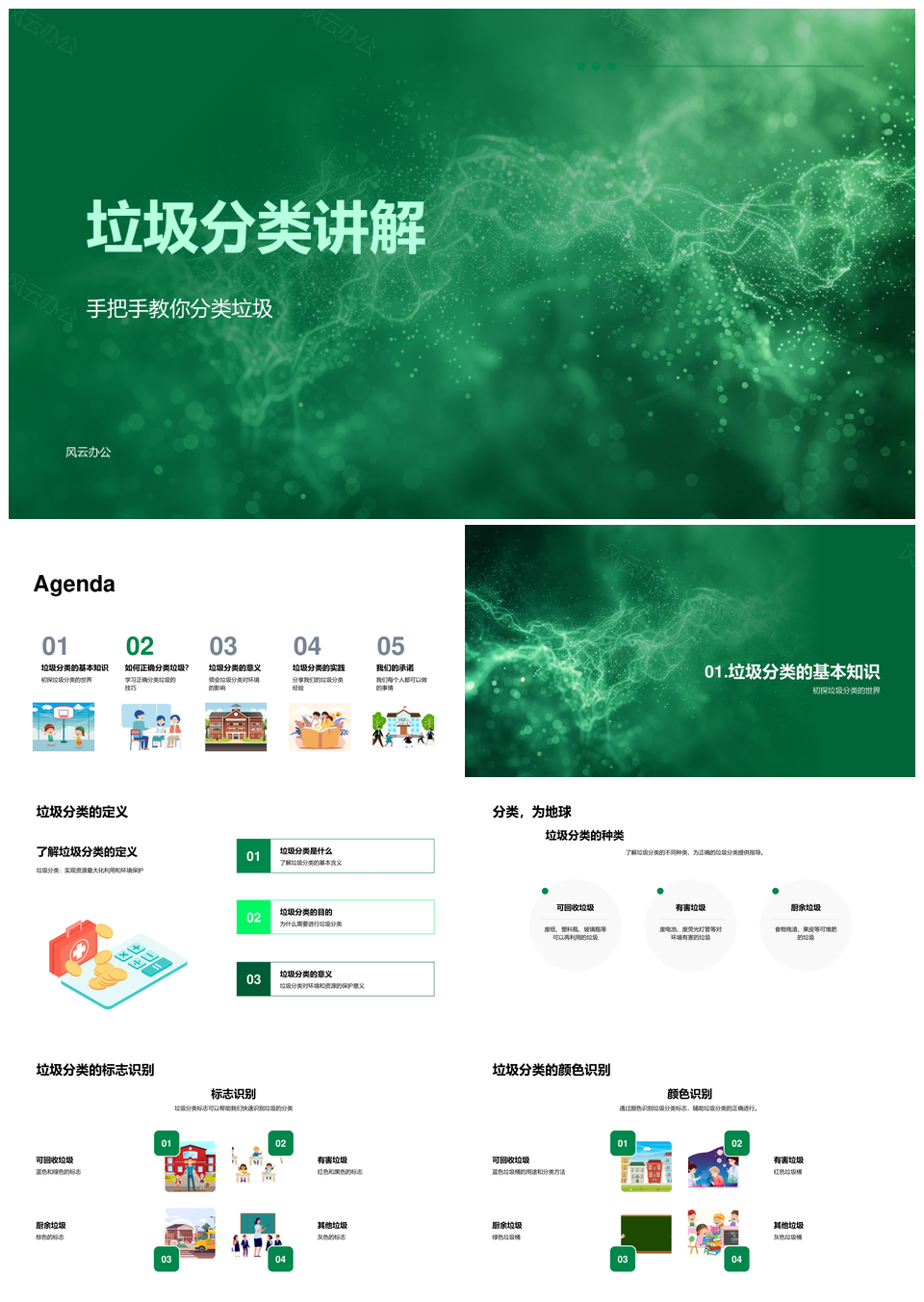 垃圾分类环保教育可回收有害厨余其他处理PPT模板推荐