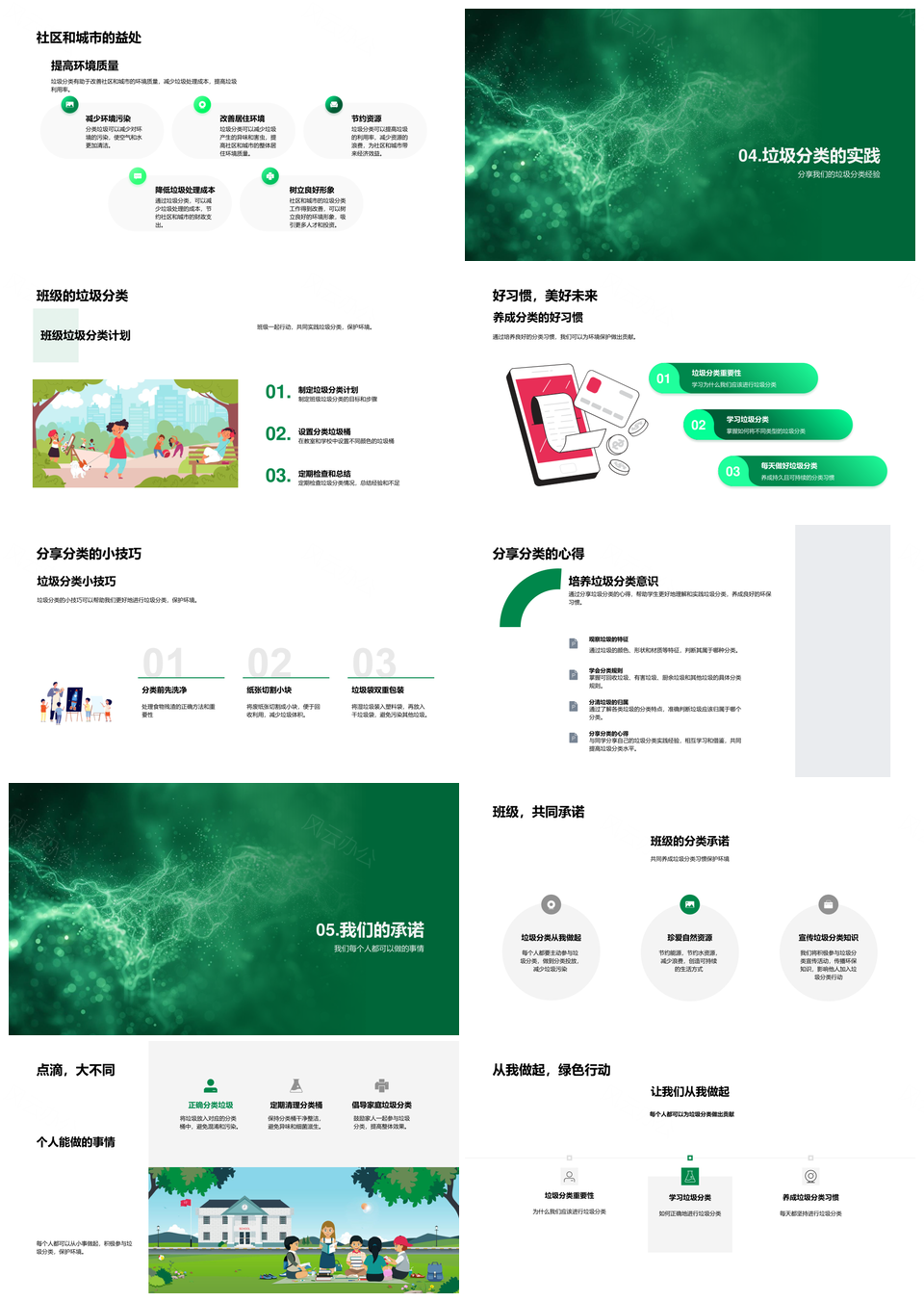 2025践行绿色生活垃圾分类环保教育主题班会PPT模板
