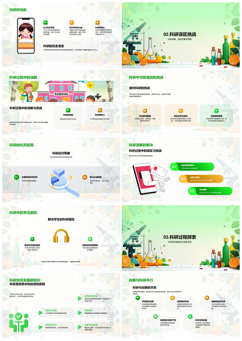 科研研究旅程成果教育实践方法挑战PPT模板