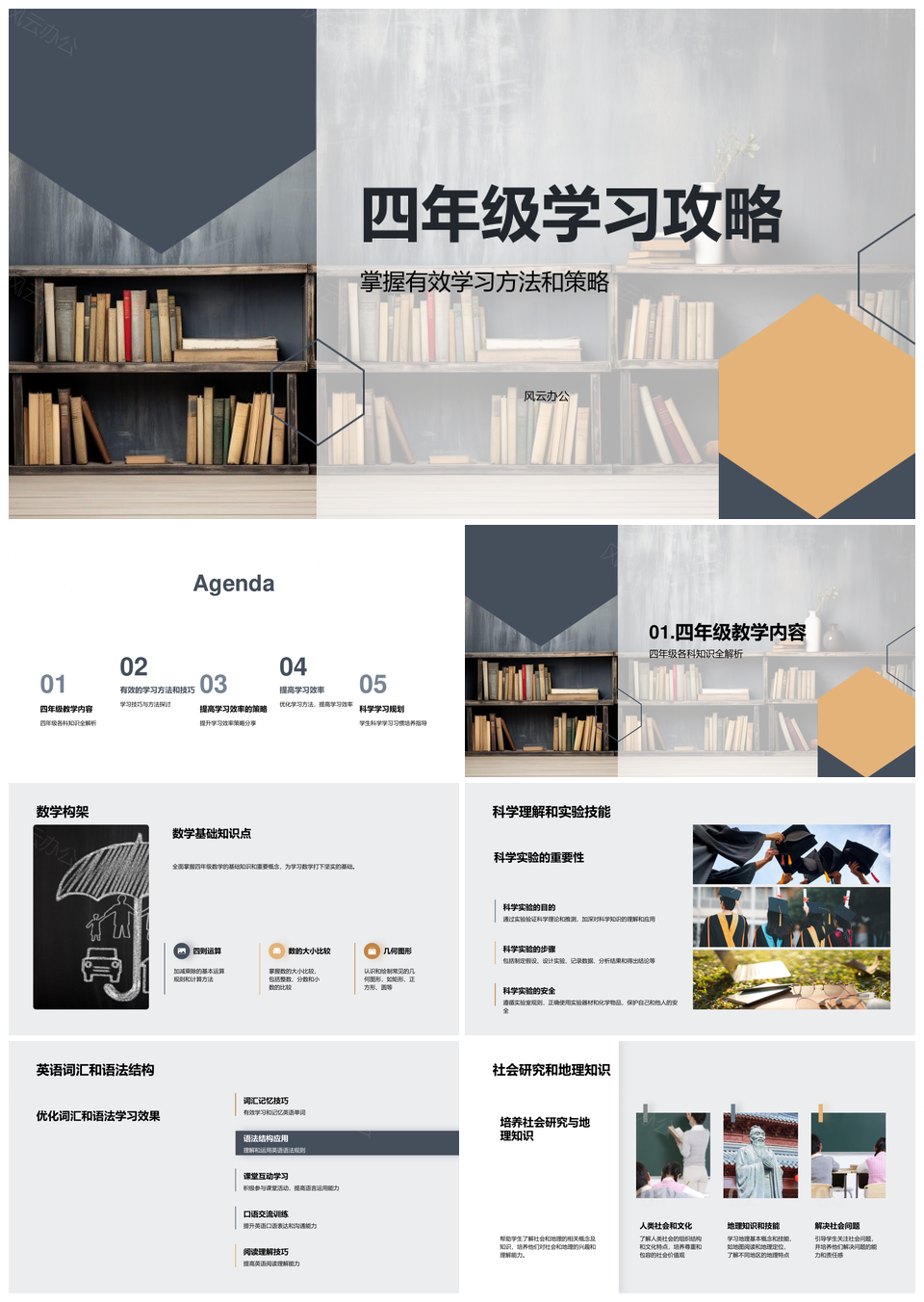 四年级数学英语词汇语法记忆工具解难复习攻略PPT模板推荐