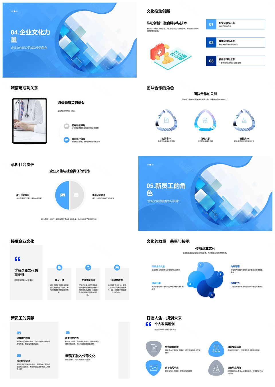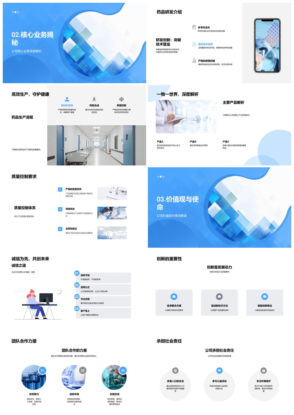 这是一张医药创新研发生产企业文化诚信团队培训PPT模板,包含医药、创新、研发、生产、企业、文化、诚信、团队、培训等主题内容,也可用作医药创新研发生产、创新研发生产企业、研发生产企业文化、生产企业文化诚信、企业文化诚信团队、医药创新研发、创新研发生产、研发生产企业、生产企业文化、企业文化诚信、文化诚信团队、诚信团队培训、医药创新、创新研发、研发生产等PPT场景使用。 风云办公提供的医药创新研发生产企业文化诚信团队培训PPT模板,下载格式为pptx,一共28页,作品中文字及图均可以修改和编辑,图片更改请在作品中右键图片并更换,文字修改请直接点击文字进行修改。