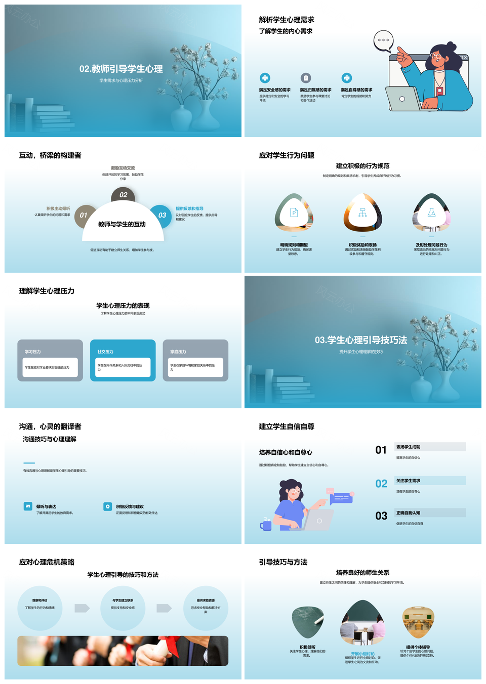 这是一张教师引导互动沟通促进学生心理发展PPT模板,包含教师、引导、互动、沟通、促进、学生、心理、发展等主题内容,也可用作教师引导互动沟通、引导互动沟通促进、互动沟通促进学生、沟通促进学生心理、促进学生心理发展、教师引导互动促进、引导互动促进学生、互动促进学生心理、沟通学生心理发展、教师引导沟通促进、引导沟通促进学生、教师促进学生心理、教师互动心理发展、引导沟通学生心理、互动促进心理发展等PPT场景使用。