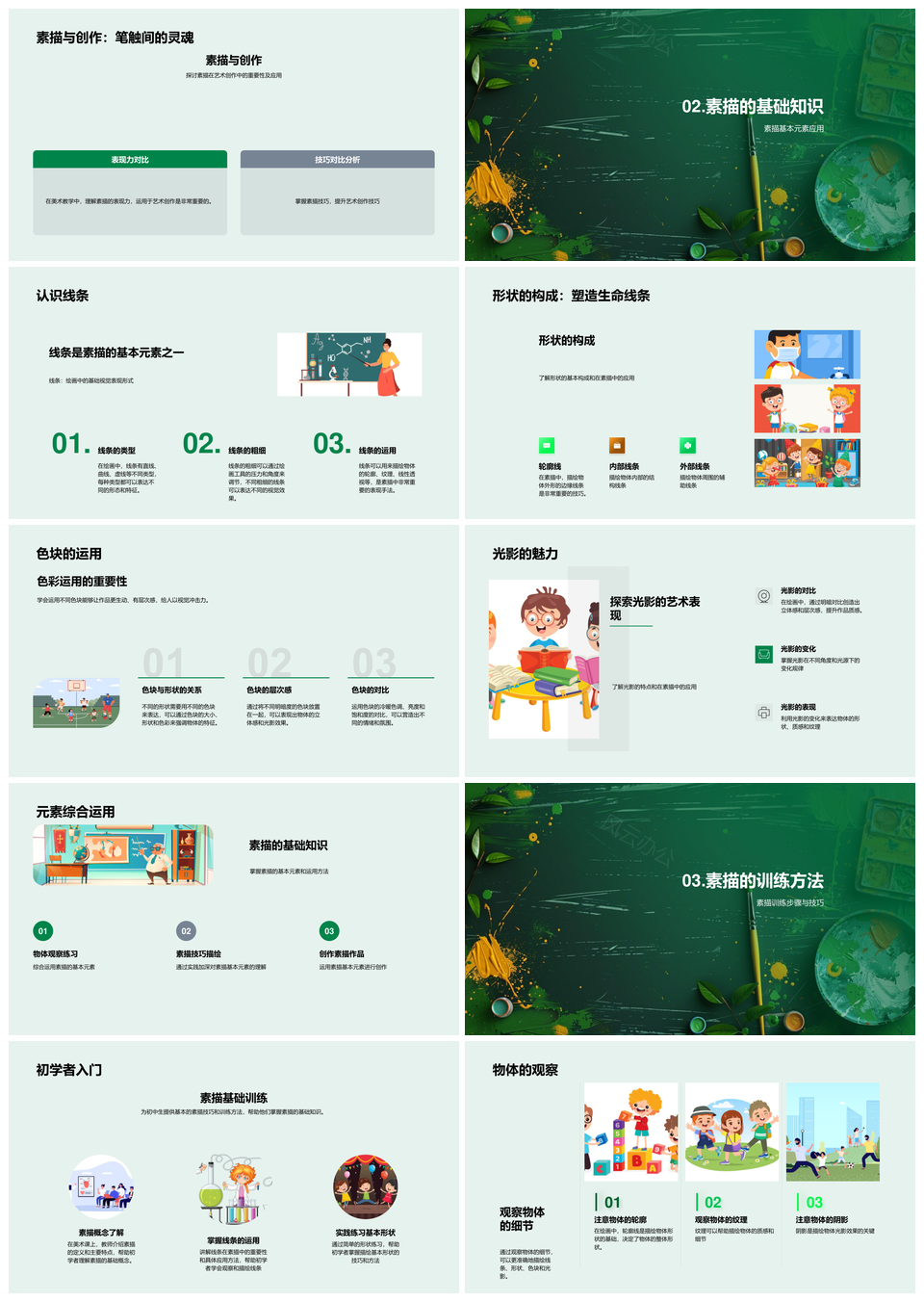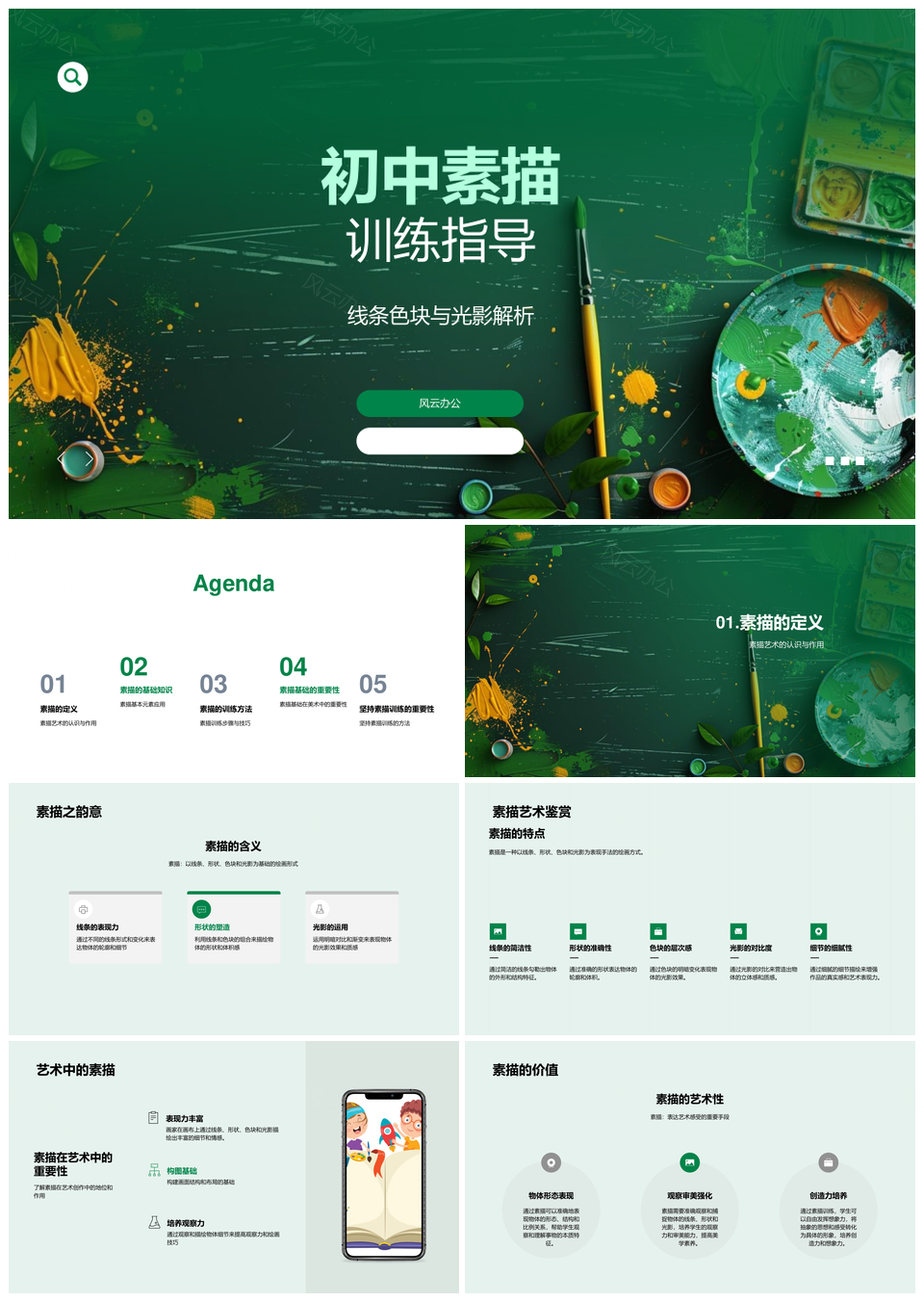风云办公提供的2025初中素描基础训练步骤方法PPT模板,下载格式为pptx,一共33页,作品中文字及图均可以修改和编辑,图片更改请在作品中右键图片并更换,文字修改请直接点击文字进行修改。