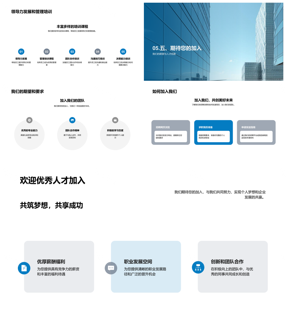 这是一张企业招贤纳士高薪福利职涯发展优企培训PPT模板,包含招贤纳士、高薪福利、职涯发展、优企培训等主题内容,也可用作企业招贤纳士高薪福利职涯发展优企培训、企业招贤纳士高薪福利职涯发展、招贤纳士高薪福利职涯发展优企、高薪福利职涯发展优企培训、企业招贤纳士高薪福利、招贤纳士高薪福利职涯发展、高薪福利职涯发展优企、职涯发展优企培训、企业招贤纳士高薪、招贤纳士高薪福利、高薪福利职涯发展、职涯发展优企、企业招贤纳士、招贤纳士高薪、高薪福利、职涯发展、优企培训等PPT场景使用。 风云办公提供的企业招贤纳士高薪福利职涯发展优企培训PPT模板,下载格式为pptx,一共23页,作品中文字及图均可以修改和编辑,图片更改请在作品中右键图片并更换,文字修改请直接点击文字进行修改。