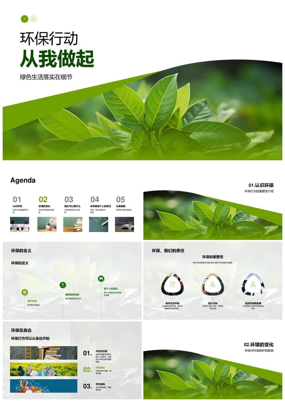 风云办公提供的幼师环保教育引领绿色生活实践PPT模板,下载格式为pptx,一共23页,作品中文字及图均可以修改和编辑,图片更改请在作品中右键图片并更换,文字修改请直接点击文字进行修改。
