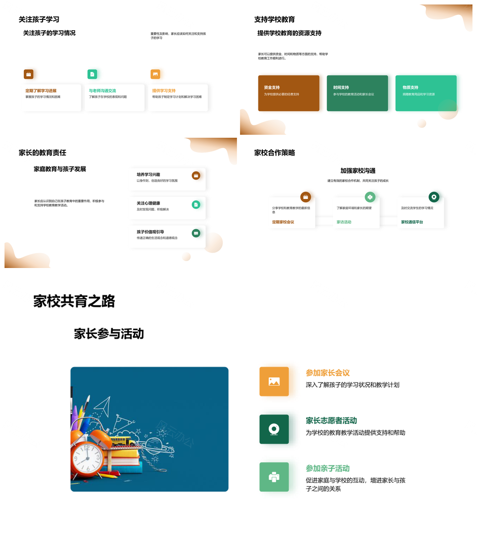 风云办公提供的家校协同创新教学观点改进进展PPT模板,下载格式为pptx,一共33页,作品中文字及图均可以修改和编辑,图片更改请在作品中右键图片并更换,文字修改请直接点击文字进行修改。